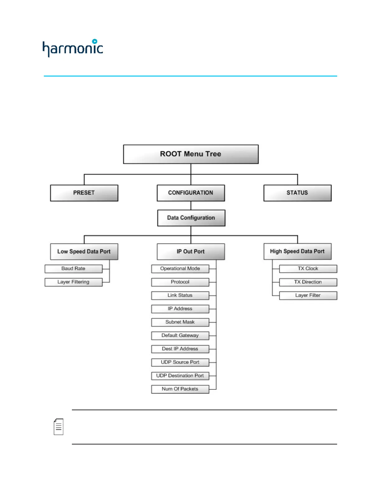 The Data Configuration Menu allows setting parameters to handle a data output stream.