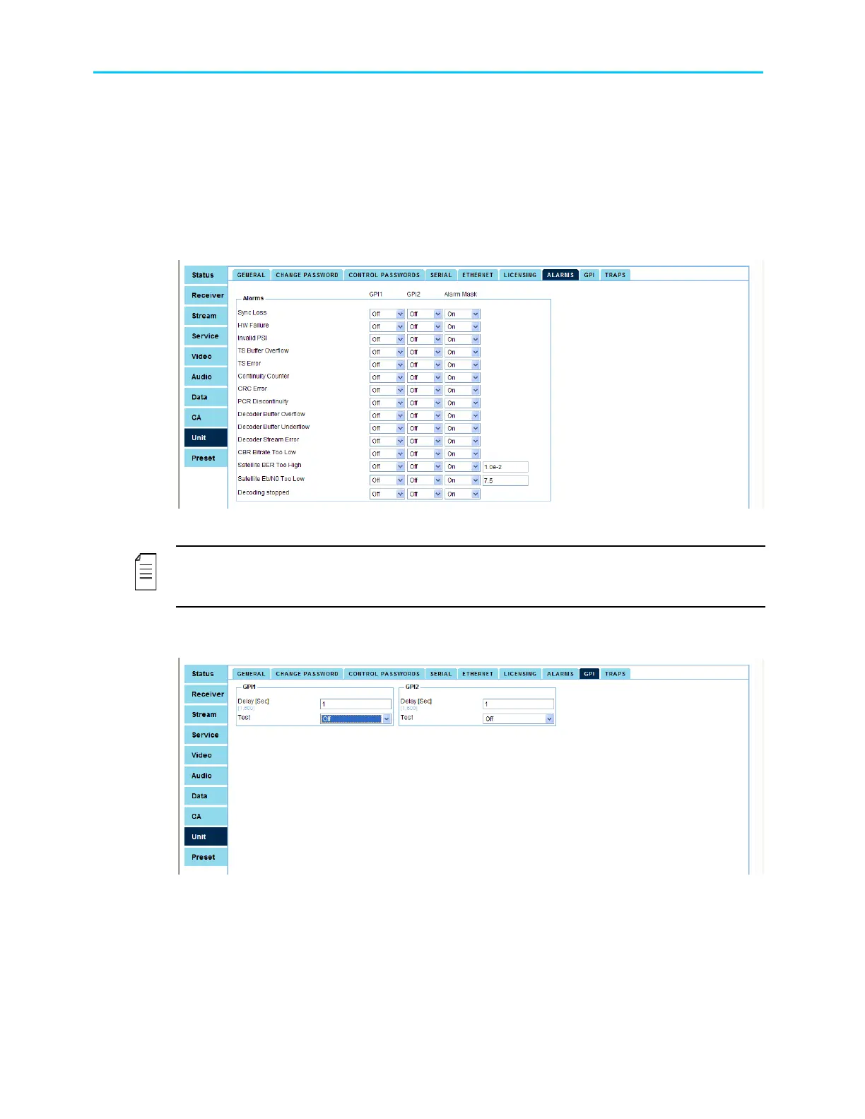 GPI1, GPI2, and the SNMP alarm can be enabled or disabled for every alarm. However once