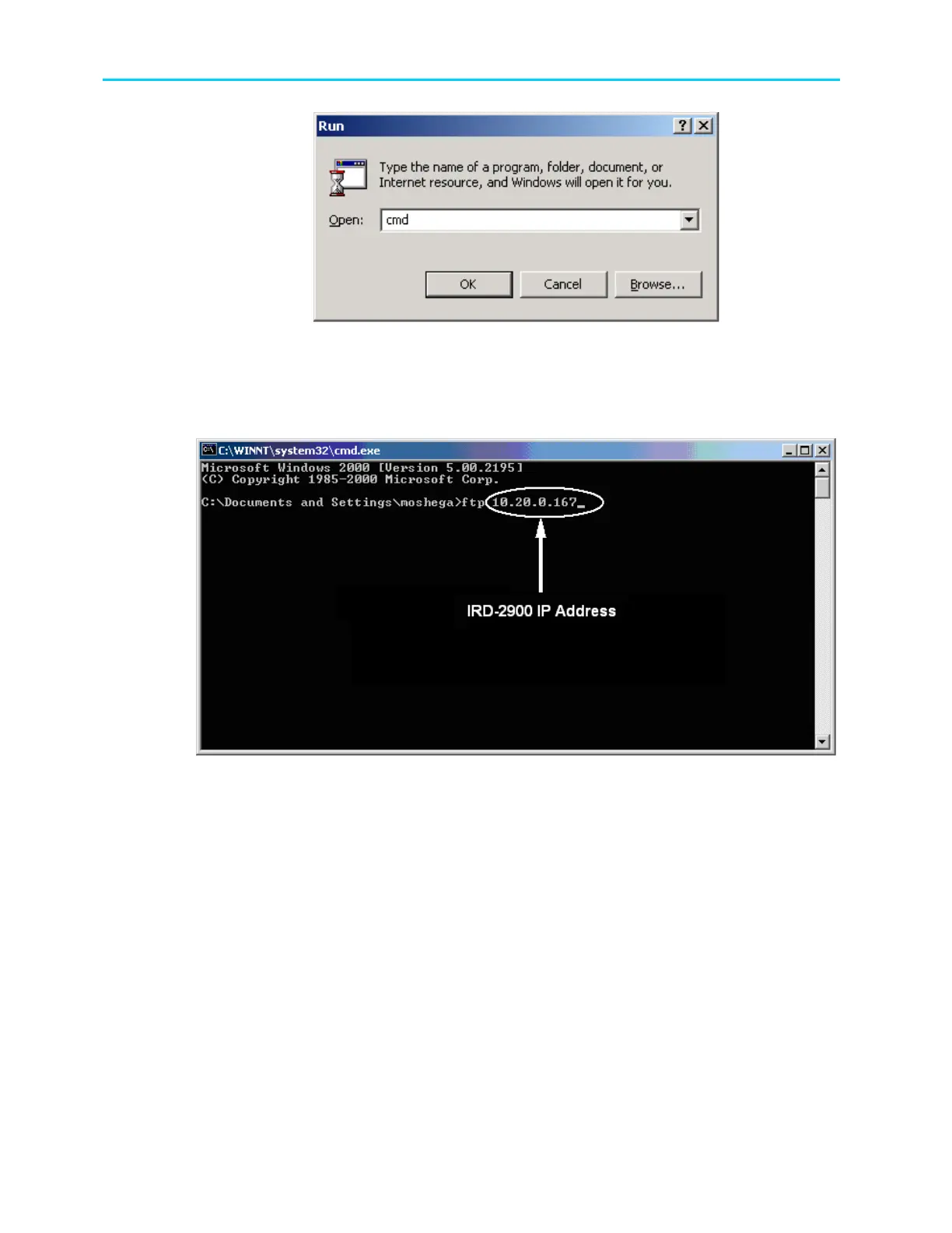 4. Type “ftp <ProView 2900 Management IP address>” and press [Enter]. FTP