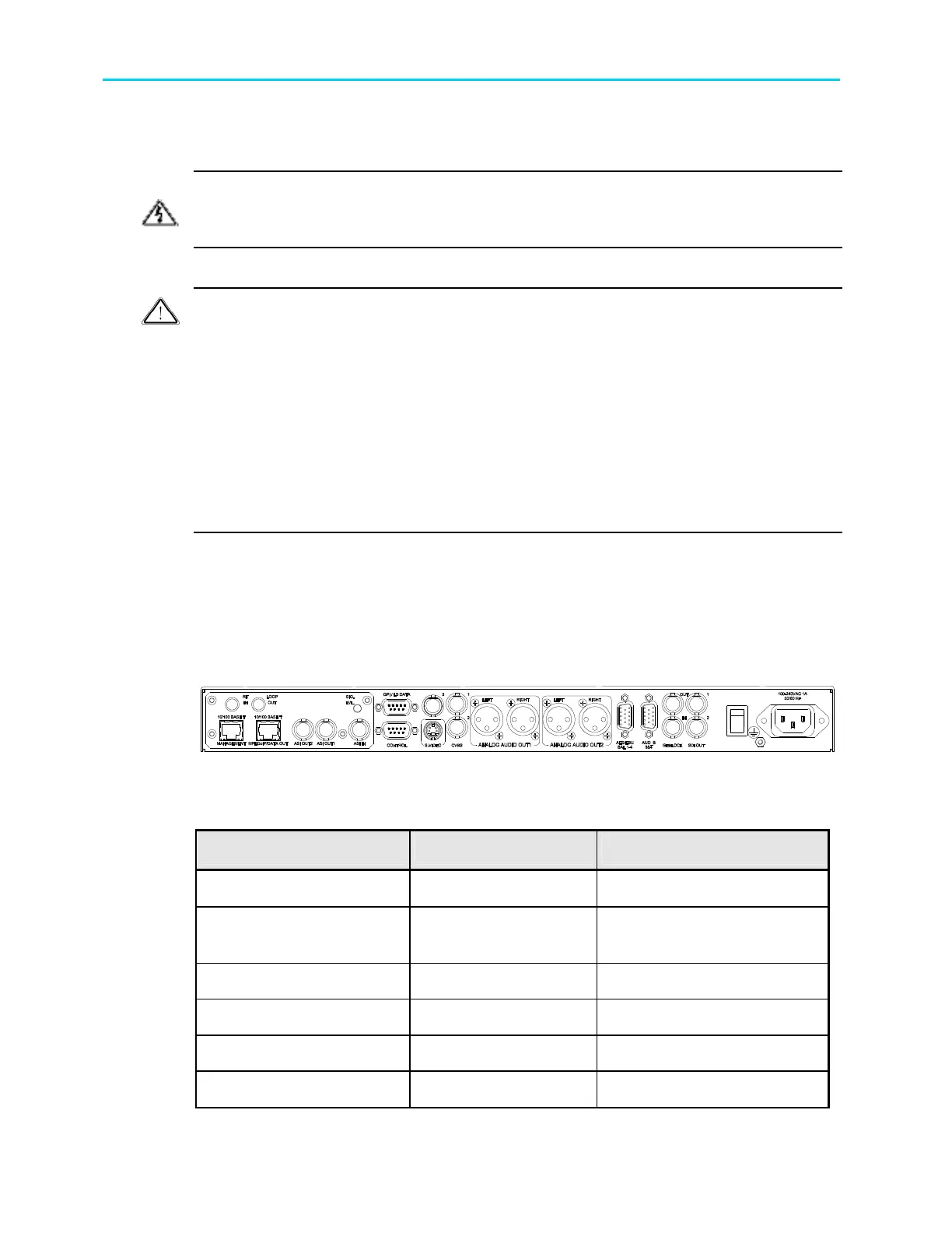 3-1 describes the various connectors and cables required to connect the unit.