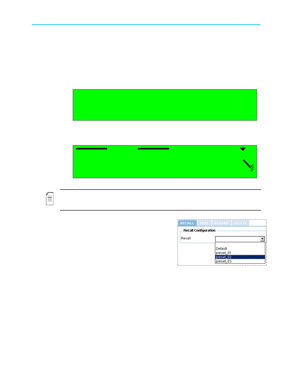 When selecting a preset to recall – the following screen appears: This screen