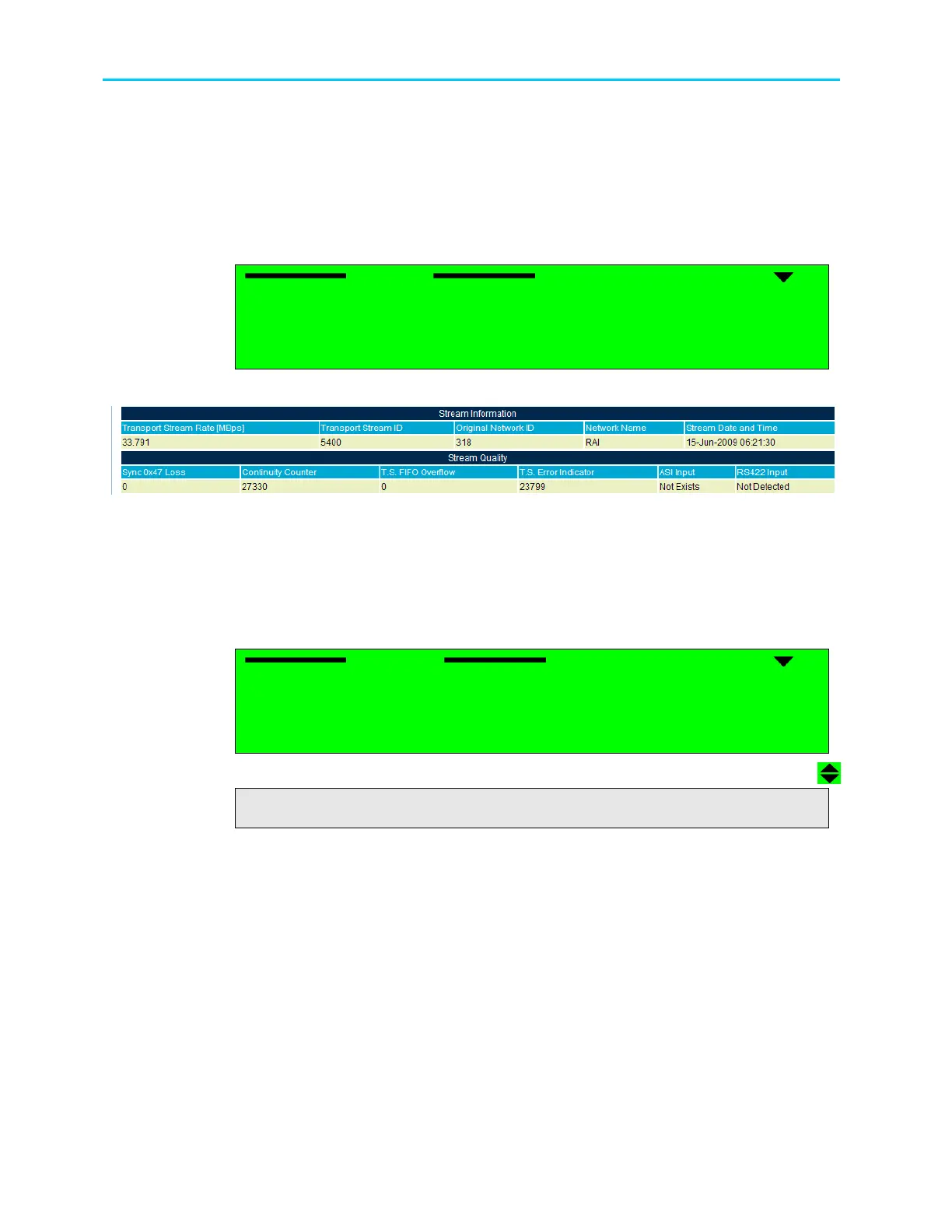 The Quality Menu displays information about the quality of the Input Stream. To access the