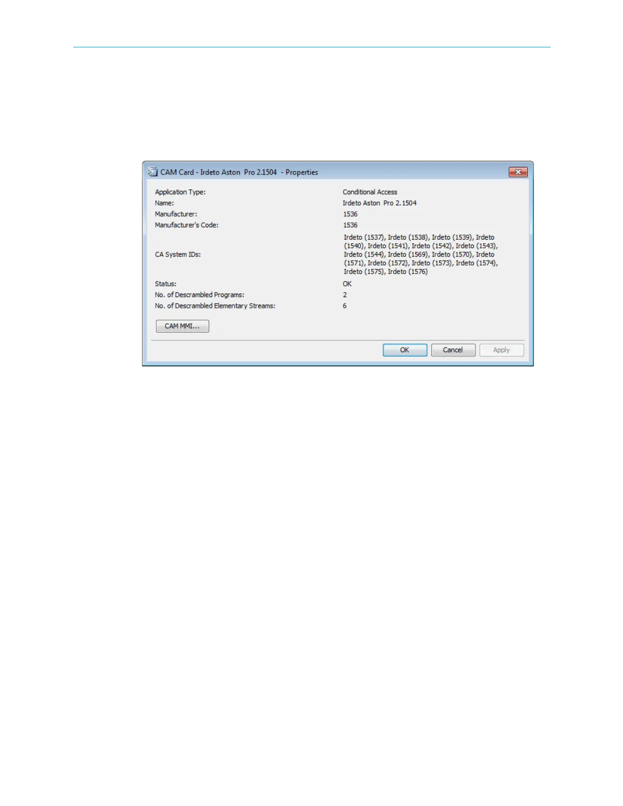 Figure 7–8: CAM Card properties dialog