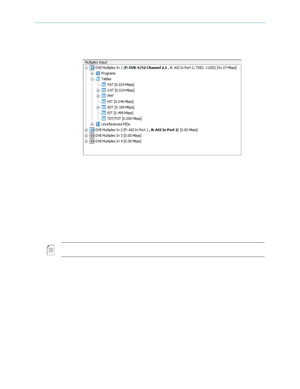 The Input Tables branch provides access to the following MPEG PSI and DVB PSI/SI tables