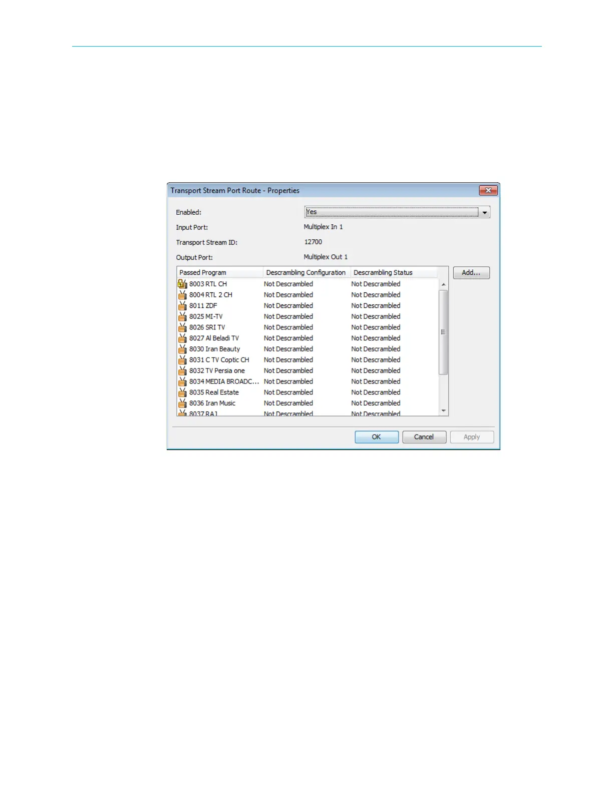 4.5.4.2 Transport Stream Port Route Properties dialog
