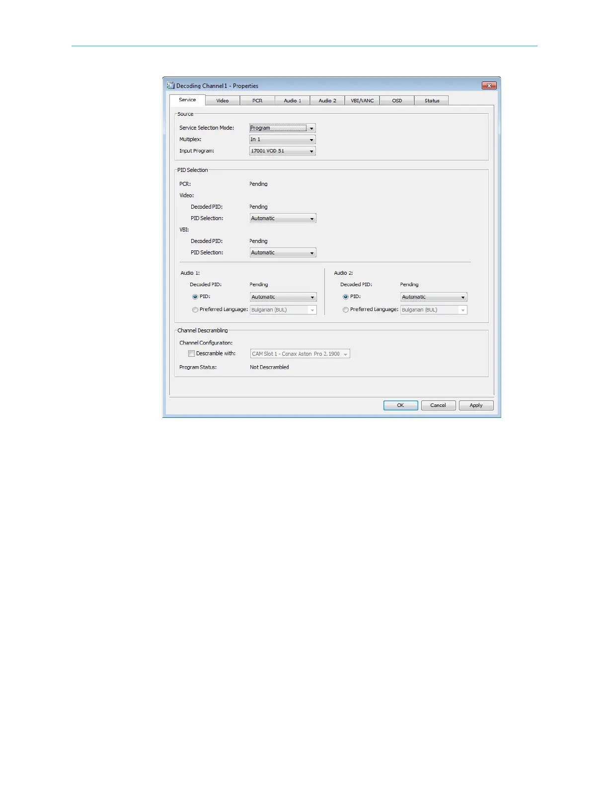 Figure 4–37: Decoding Channel Properties – Service tab
