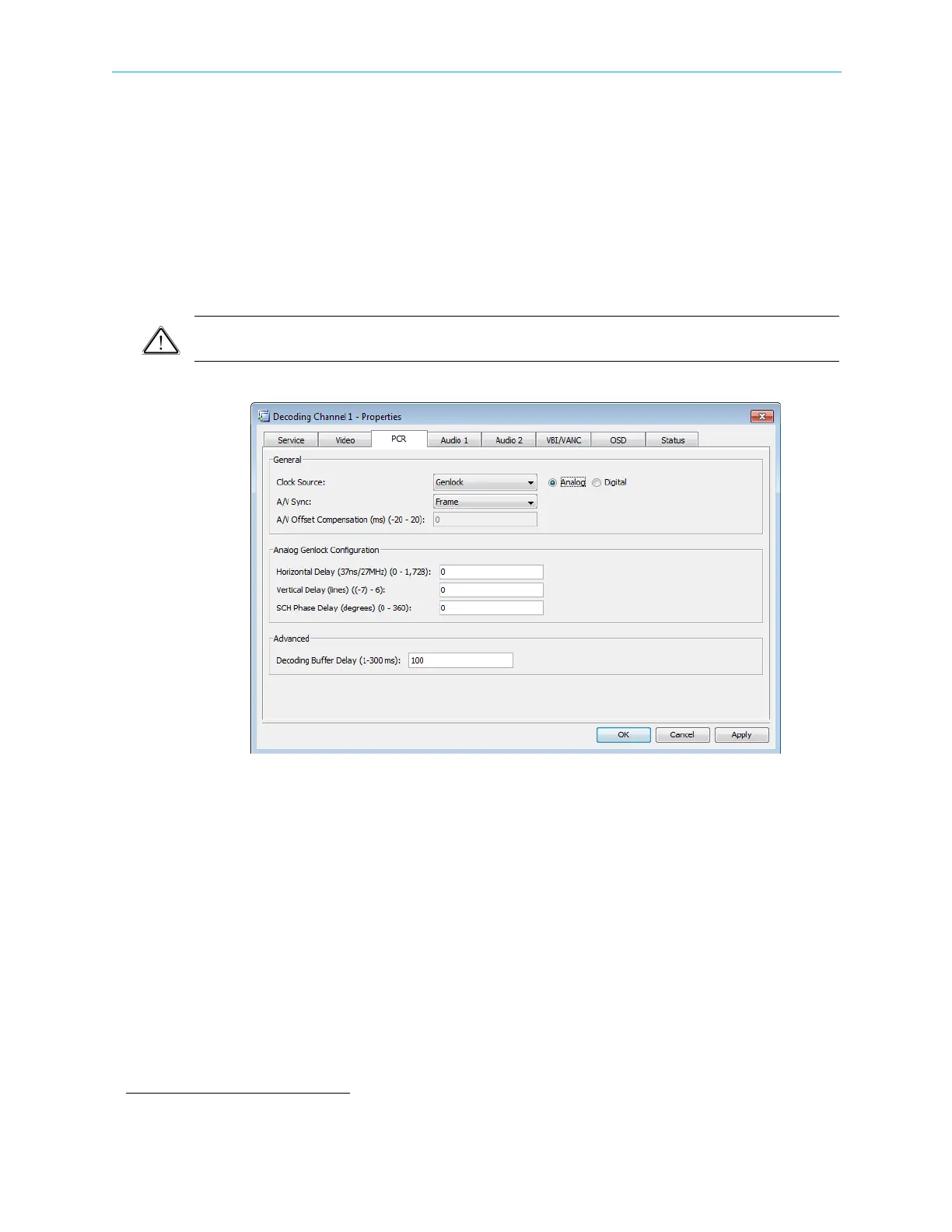 CAUTION: Changing the Decoding Buffer Delay value may cause unpredicted implications in the