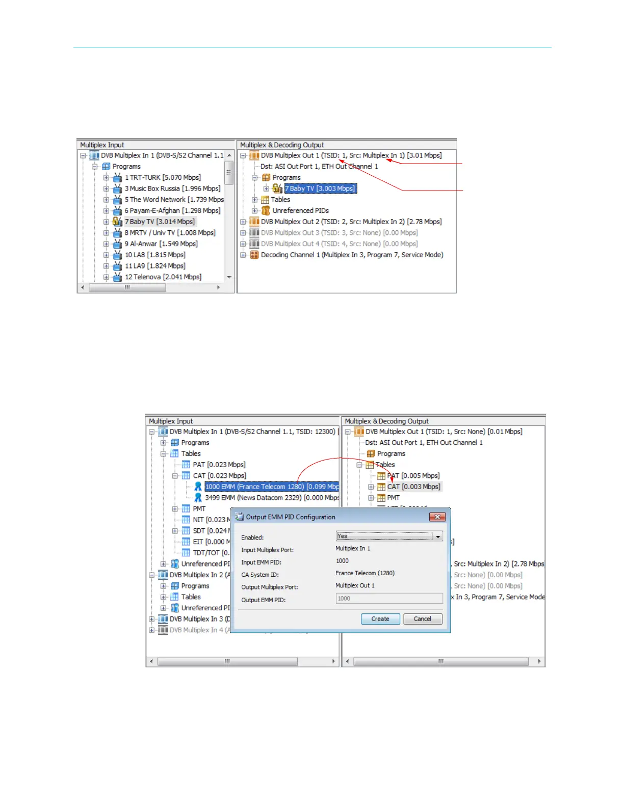 1. From the Multiplex Input box, drag the icon of the required EMM and drop it into the CAT