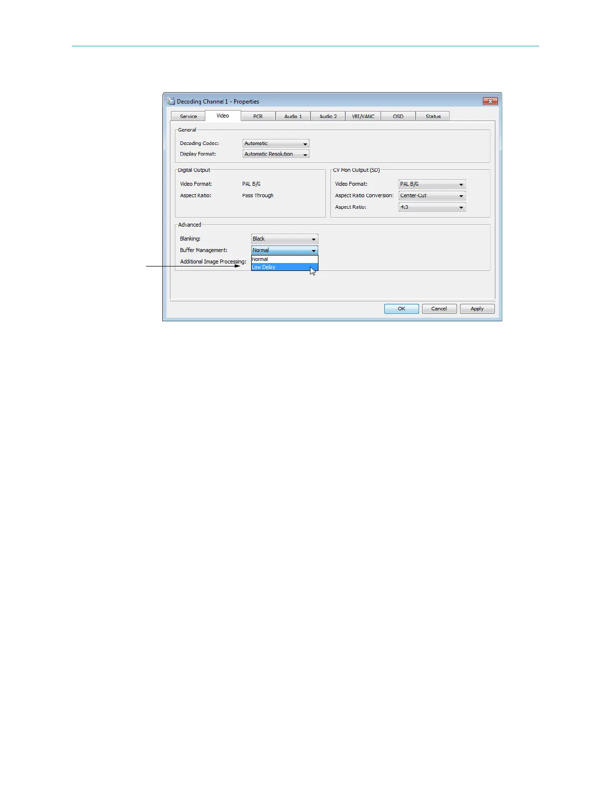 4. Select Low Delay for Buffer Management in the Advanced box, see Figure 3–2.