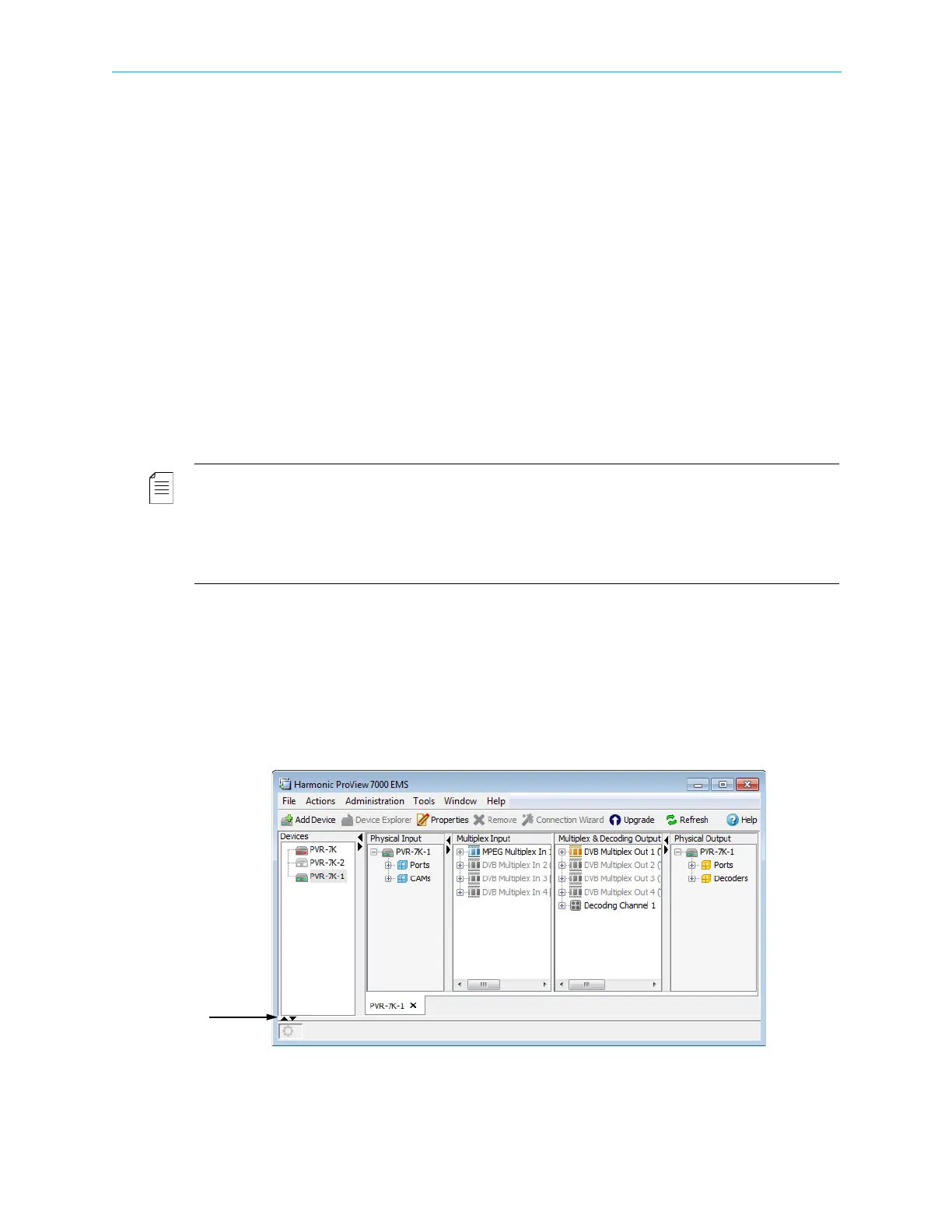 NOTE: The ProView 7000 EMS can manage several devices and can display the Device Explorer tabs of