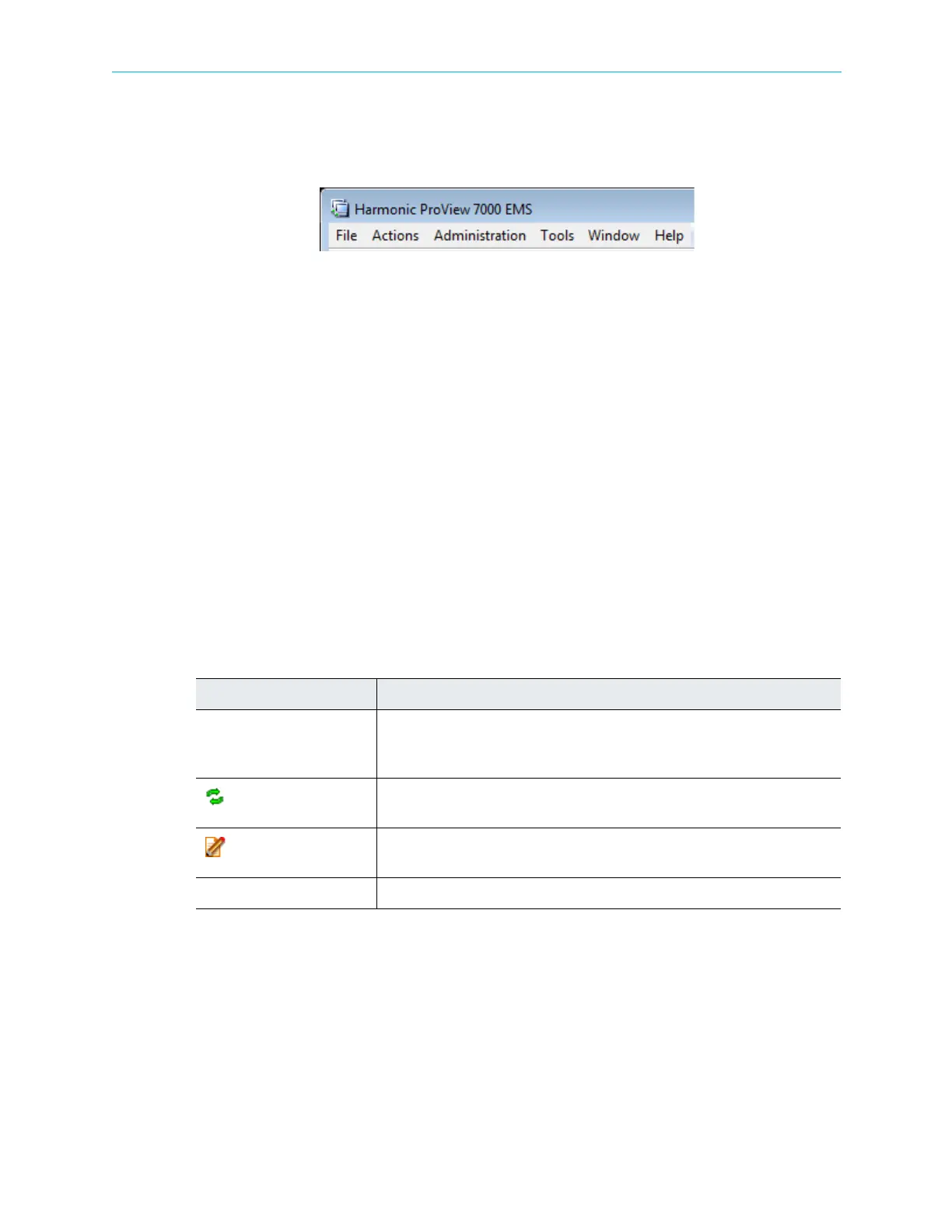 Chapter 4 Element Management System (EMS) ProView 7000 EMS Menu Bar