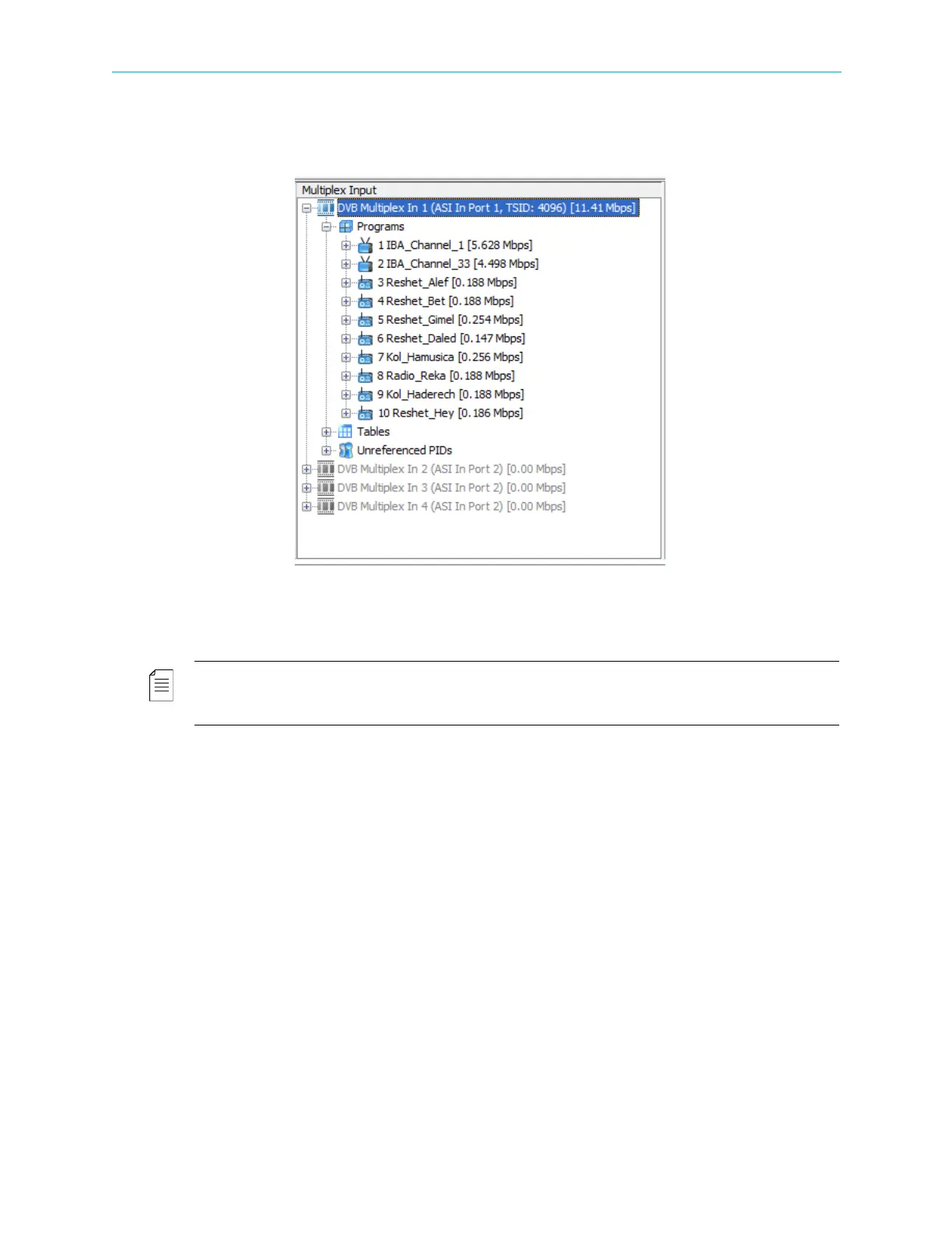 Click the Program branch in the Multiplex Input box to display all the programs related to the