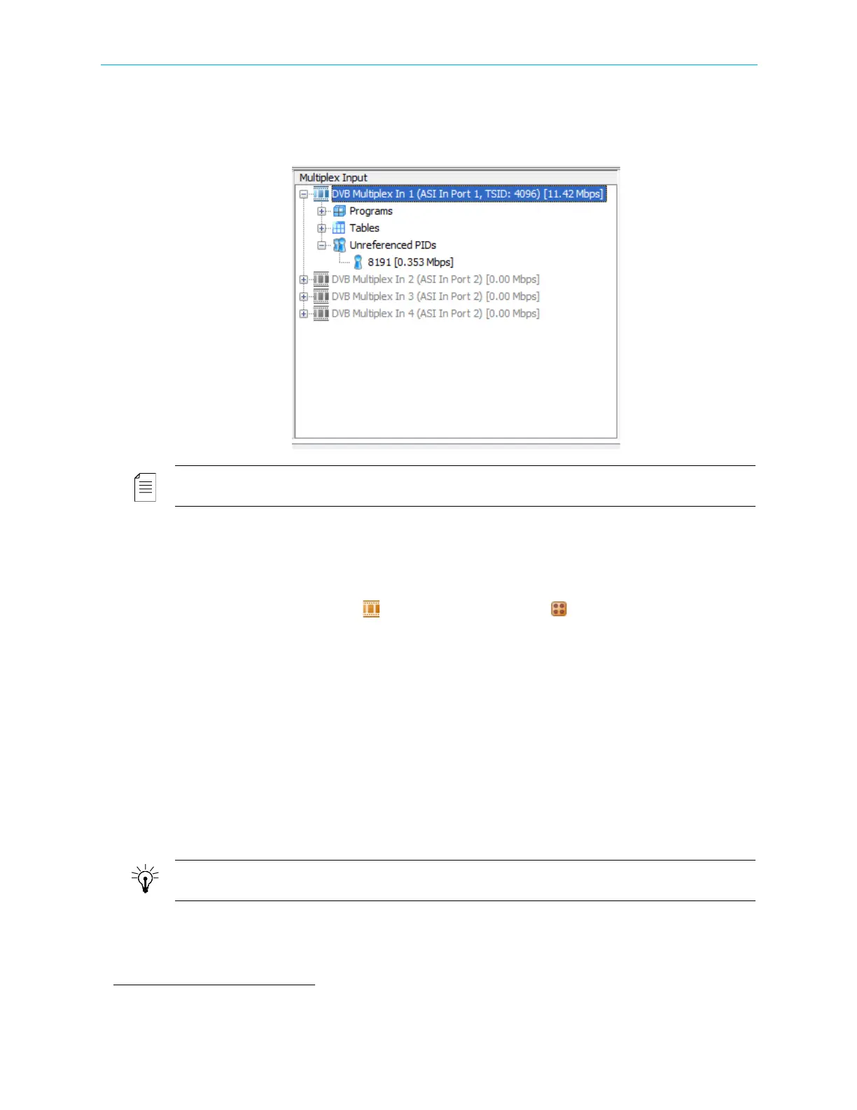 Click the Unreferenced PIDs branch in the Multiplex Input box to display all the PIDs related to