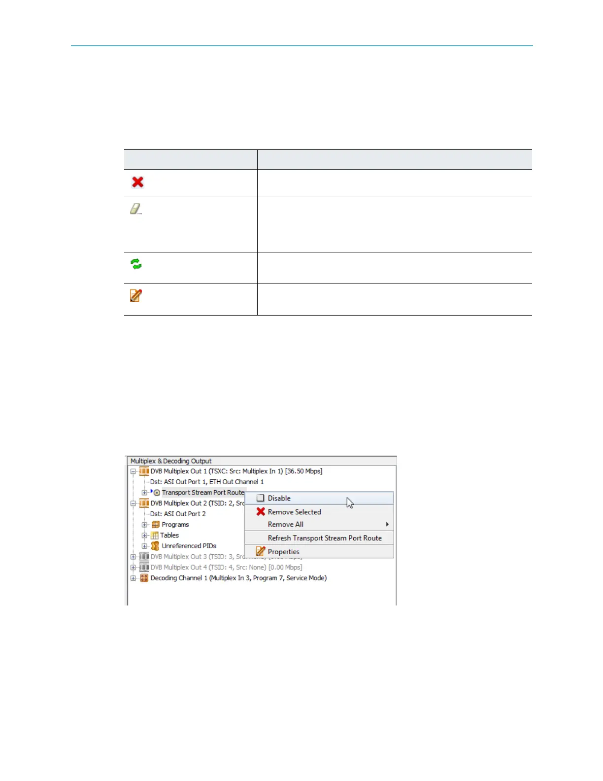 Right-click the TS Port Output Port icon or any of the elements in the branch, to display a