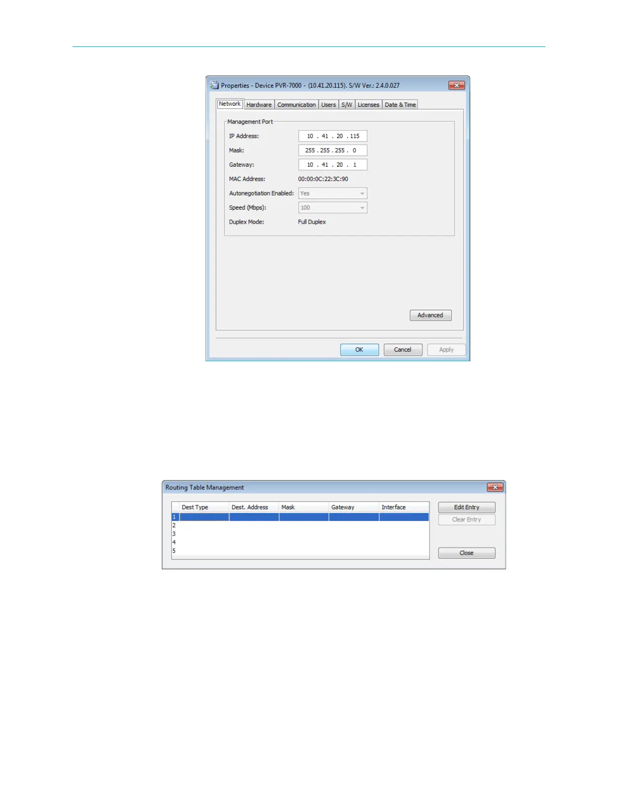 ❖ Click Advanced on the Network tab of the device properties dialog.