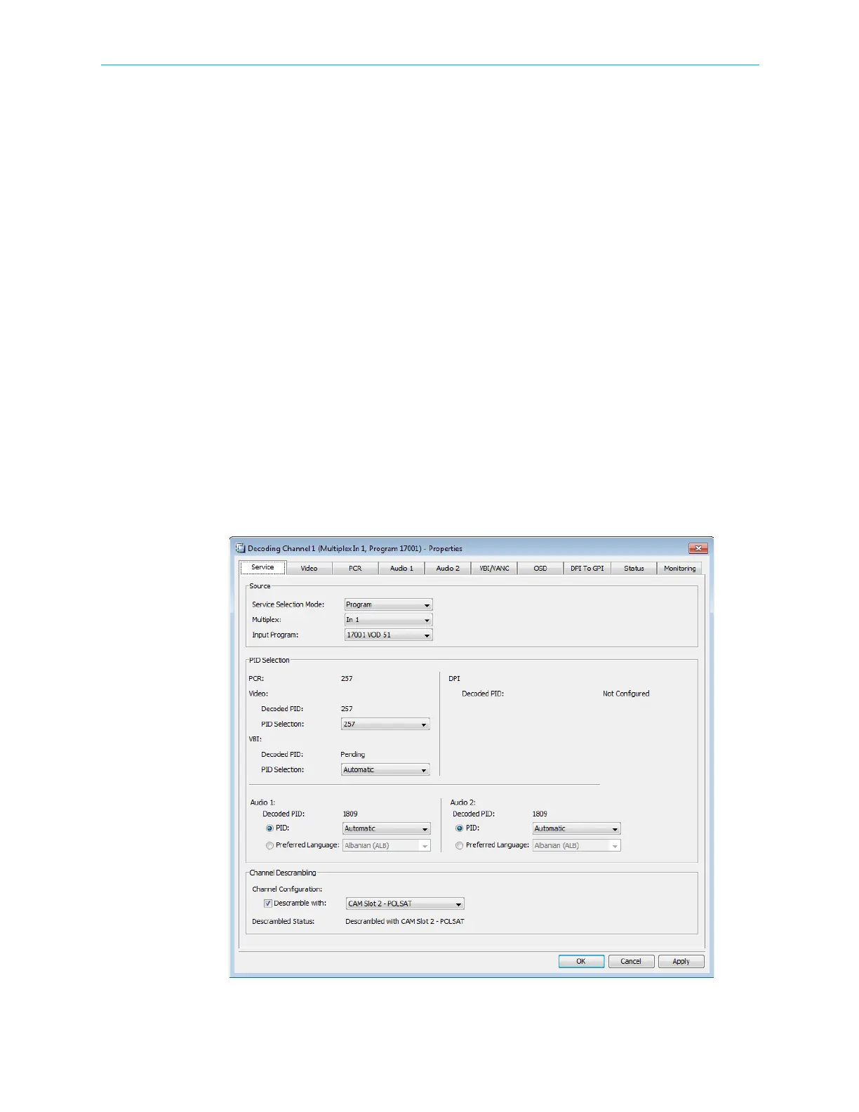 stream PID for the Video and the VBI/VANC processing. It also enables the user to set