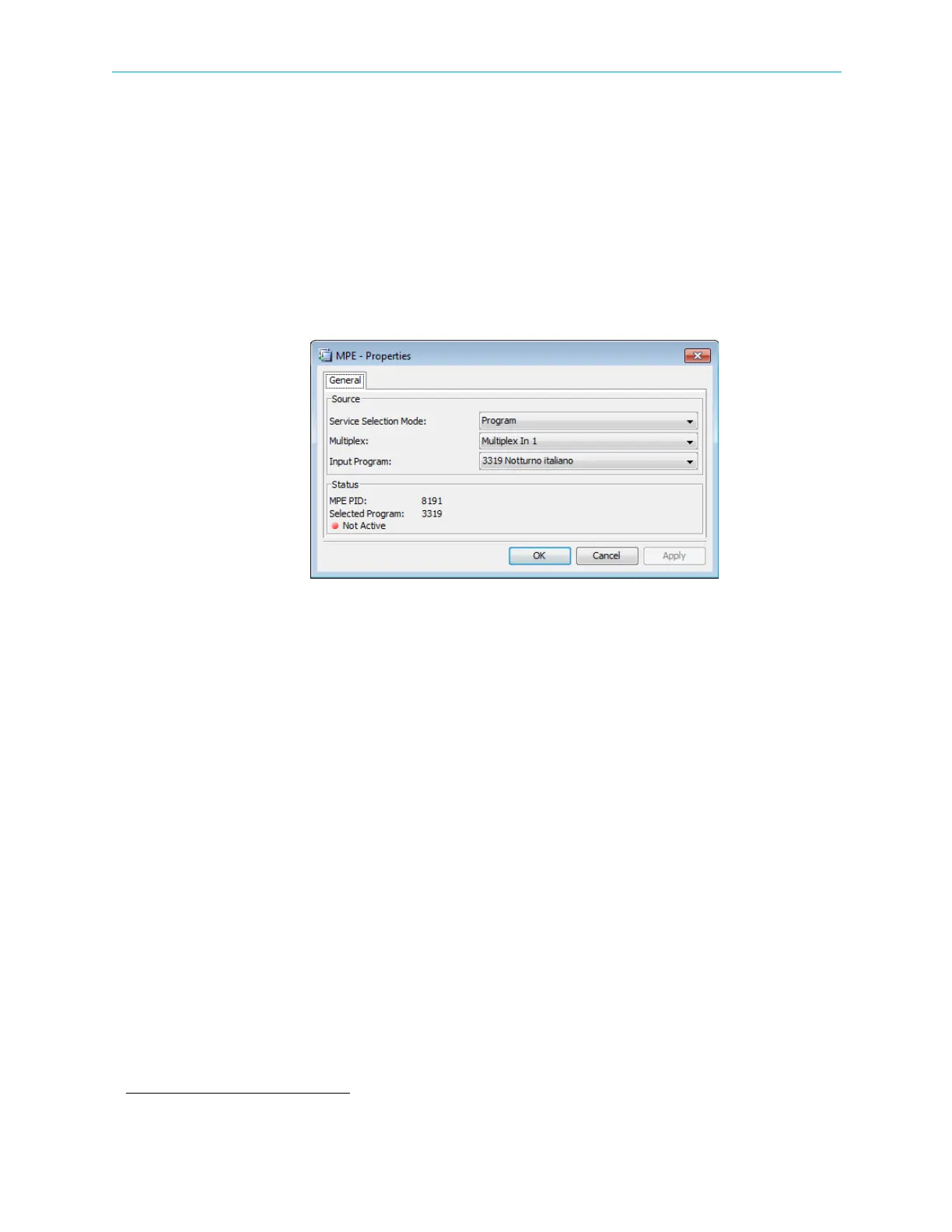 Use the MPE Properties dialog to configure one MPE PID source for GbE out. There are three