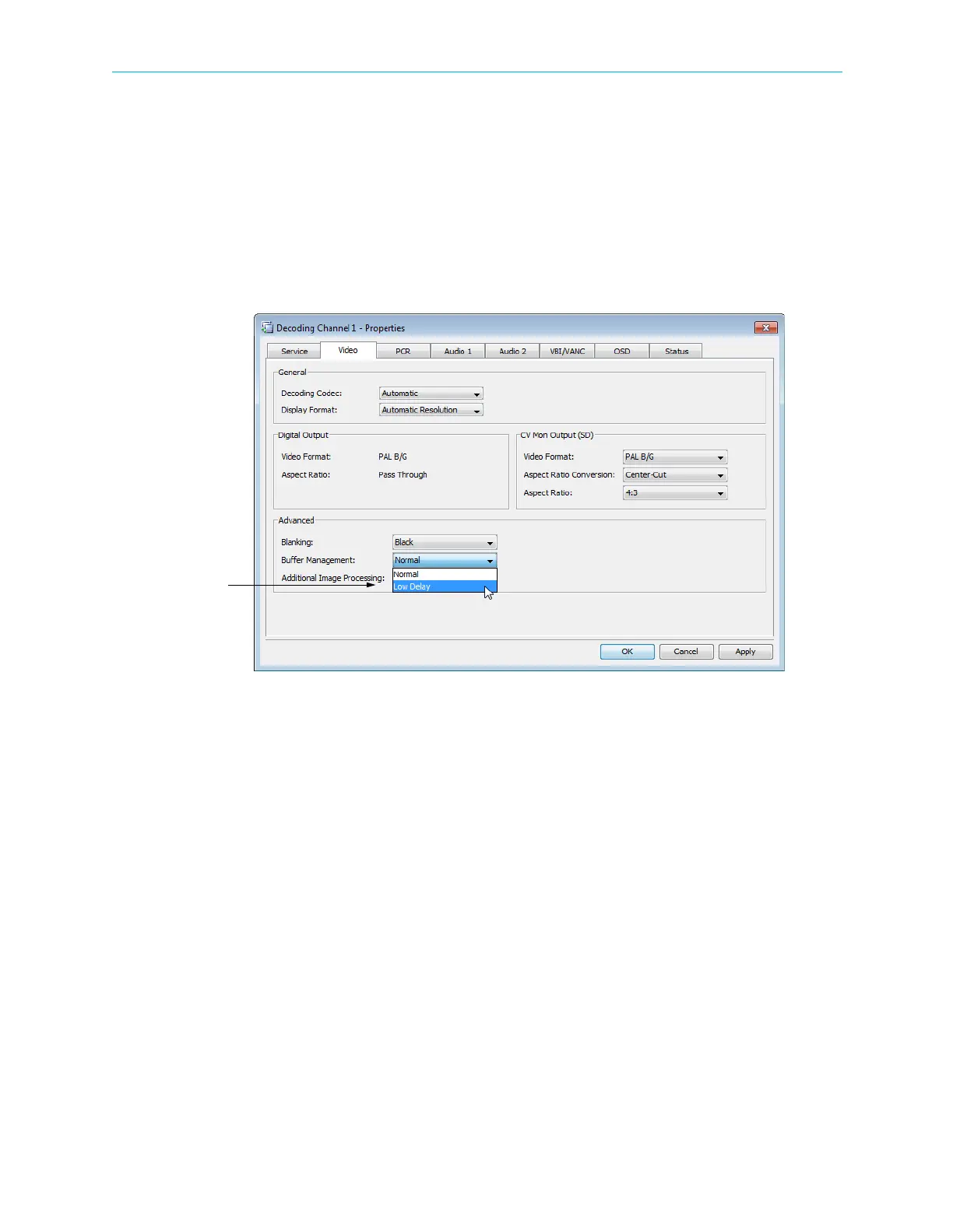 4. Select Low Delay for Buffer Management in the Advanced box, see Figure 7–33.