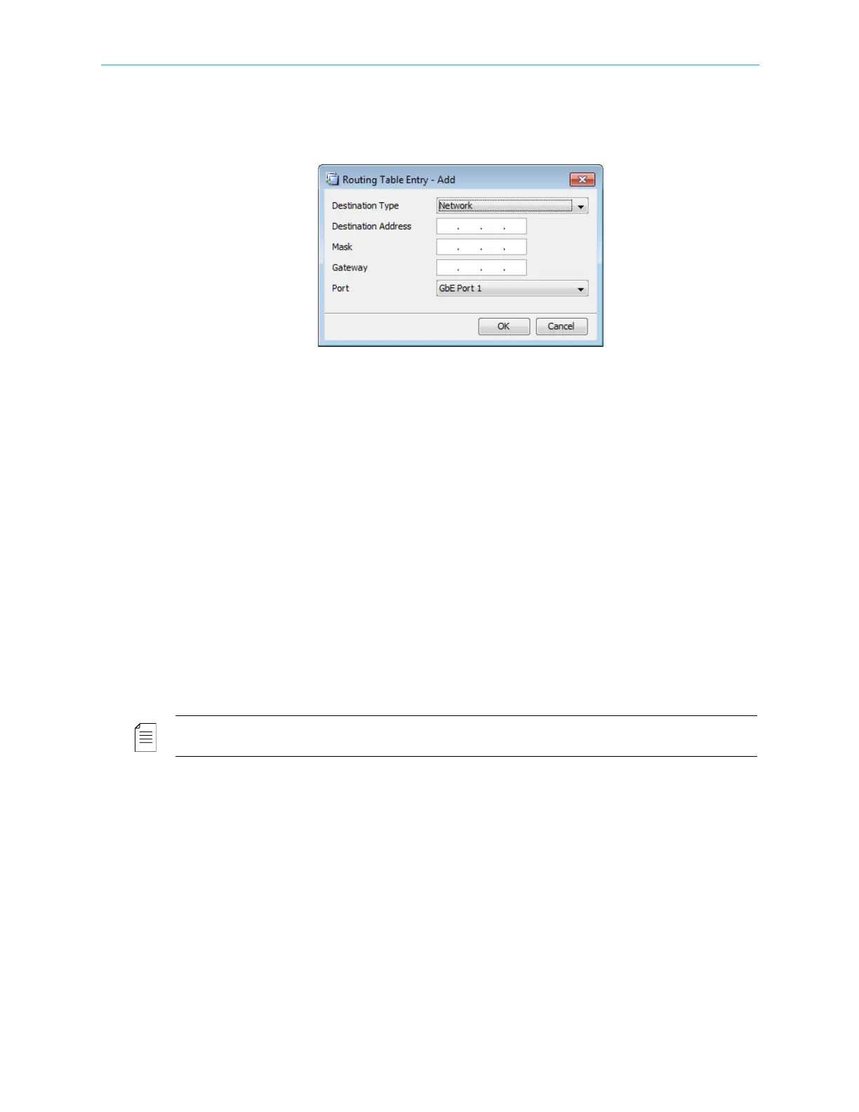 The Routing Table Entry dialog displays.