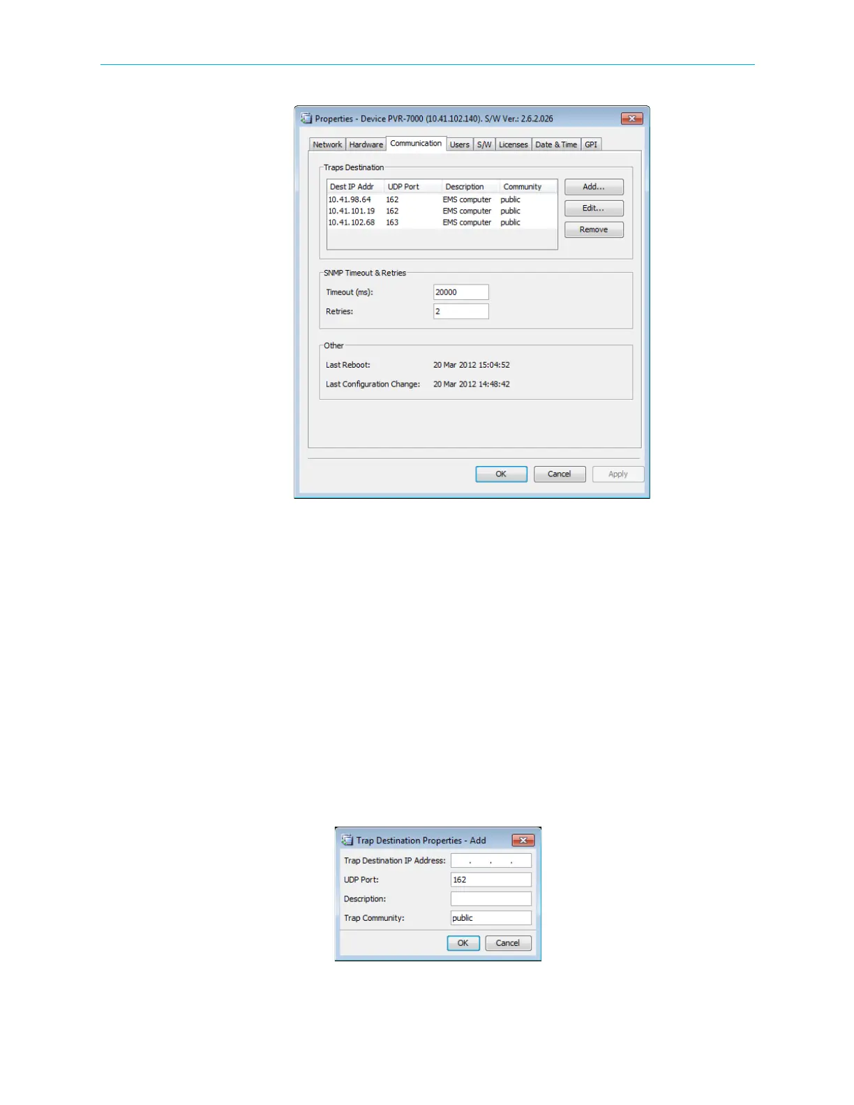 4. Fill the following fields in the Trap Destination – Add dialog.