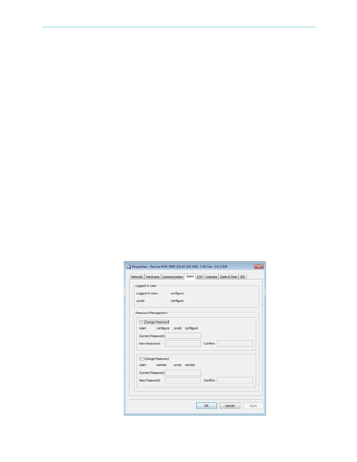 You can log in to ProView 7000™ devices using EMS on two levels; Configure and Monitor.