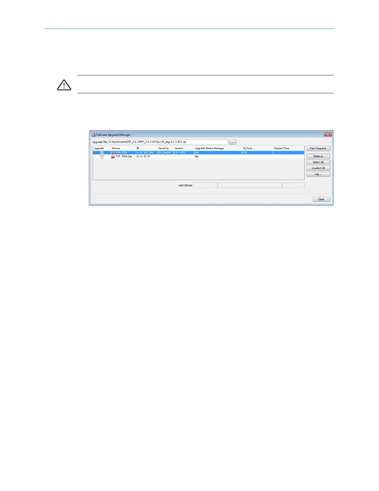 ■ [Start Upgrade] button – starts the upgrade session.