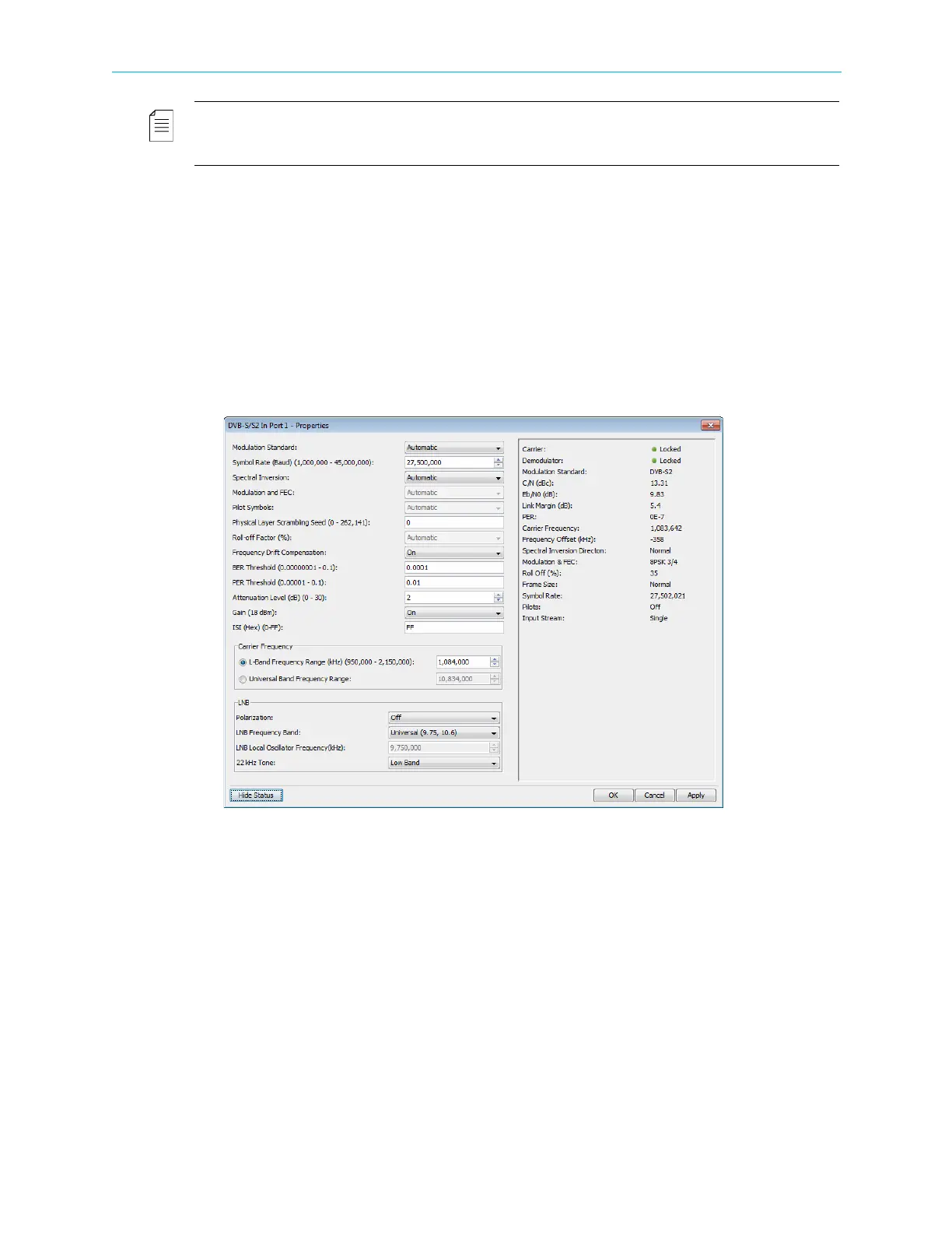 b Select the required DVB-S/S2 in port icon in the Physical Input box.
