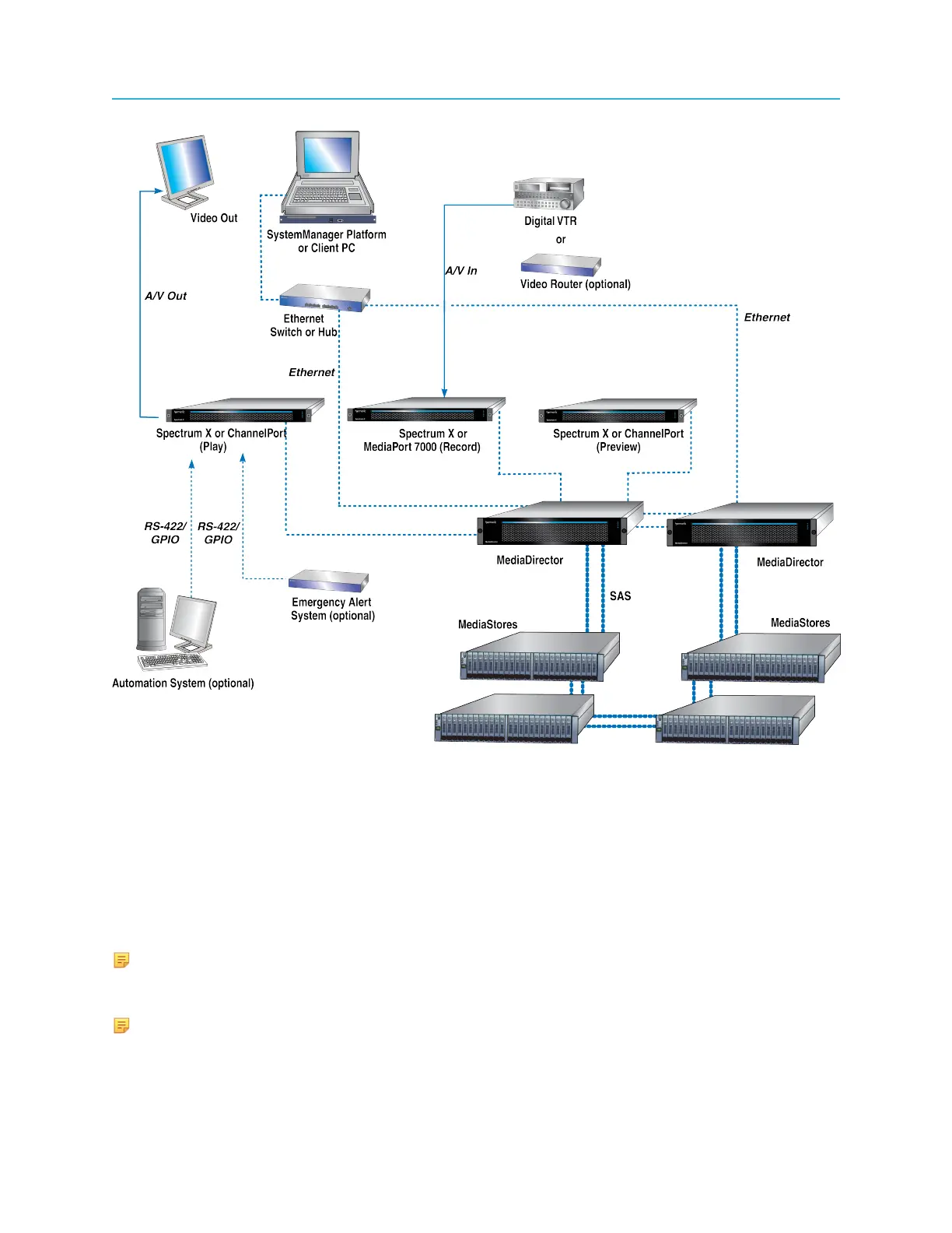 Note that, in this sample system diagram, the following are not supplied by Harmonic: