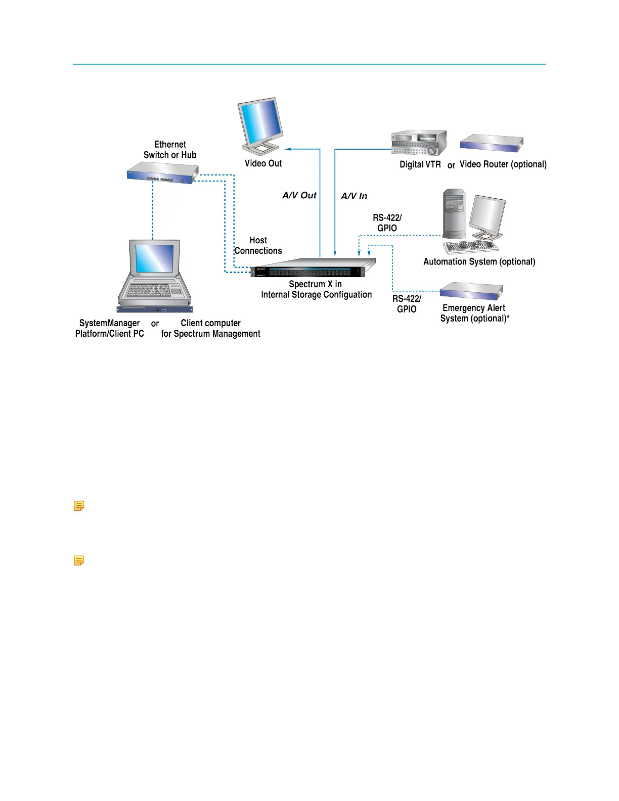 The following figure illustrates a Spectrum system layout with one Spectrum X.
