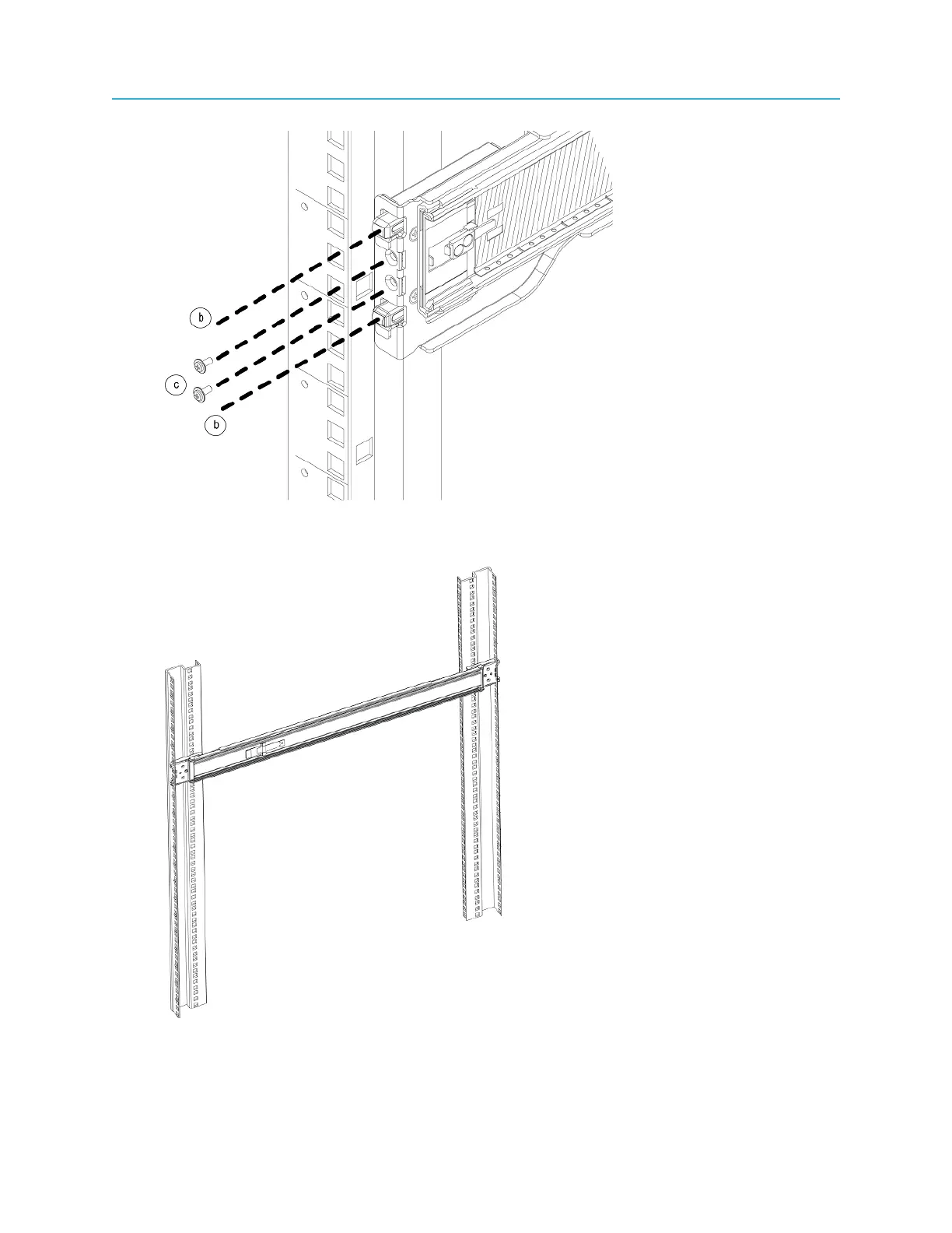 d. Repeat step 3a through step 3c to install the back end of the rail, extending the rail as needed.