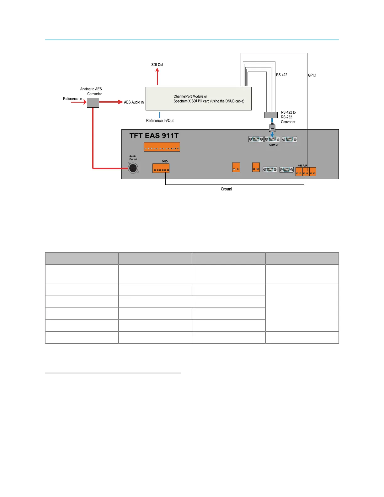 EAS 911T installation. Use the following table for reference when connecting to the EAS.