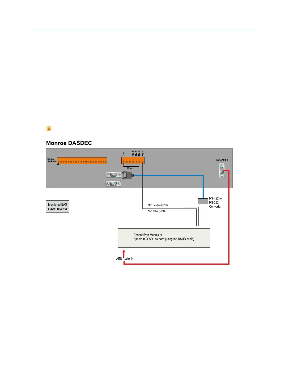 The diagrams in this section show a sample installation of a Monroe DASDEC set to emulate a Sage
