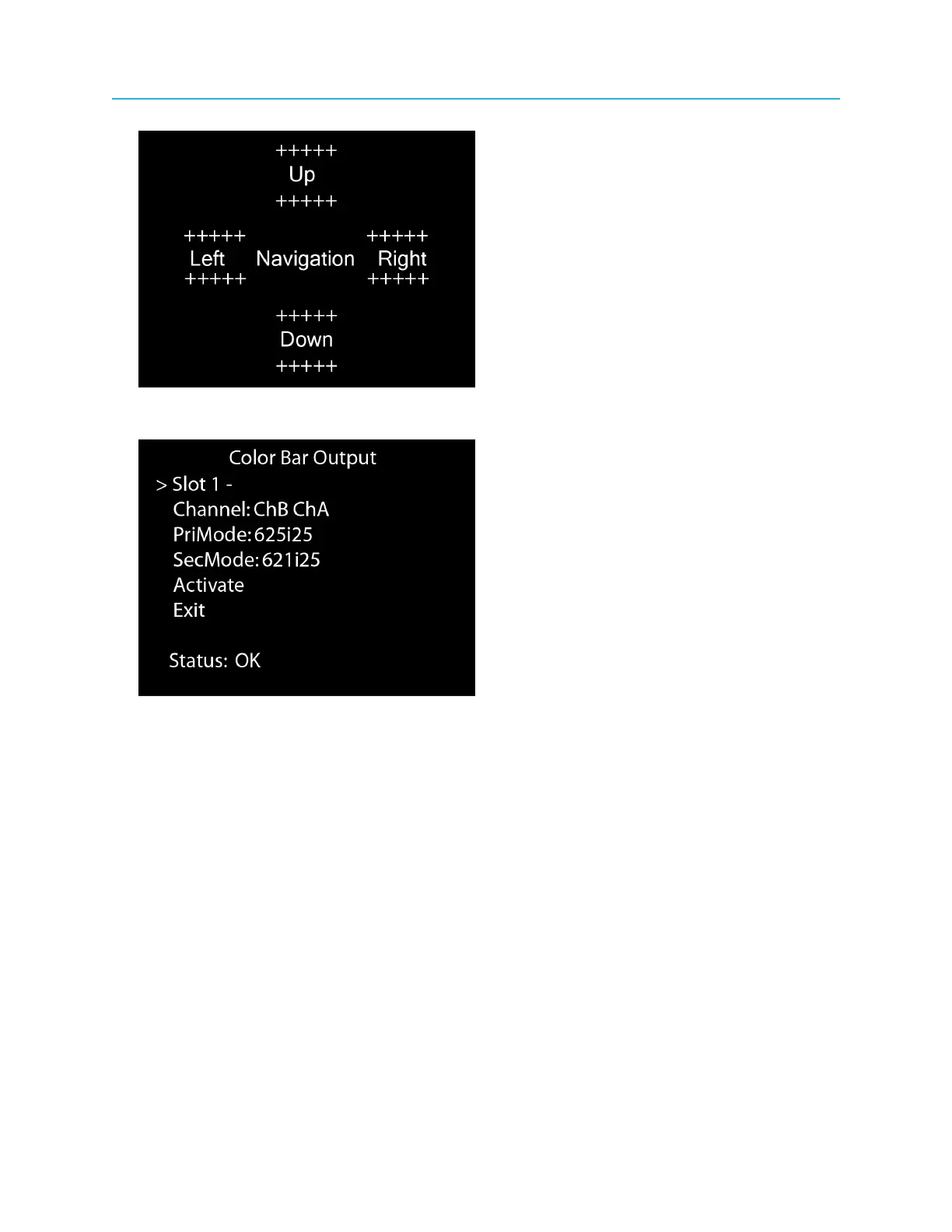 To navigate within the Color Bar Output panel, press the left, right, top, or bottom sections of