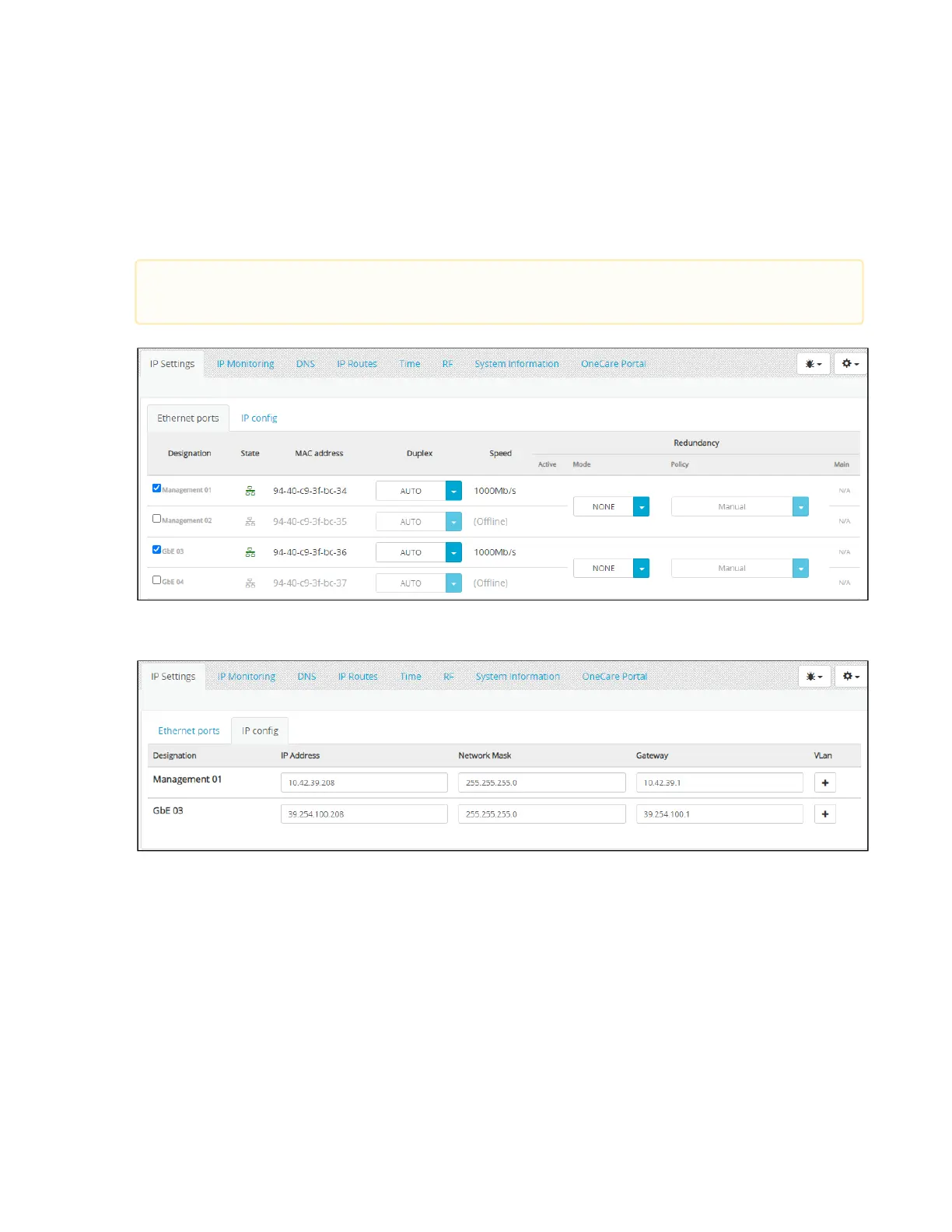 Select the IP Settings / Ethernet ports tabs.
