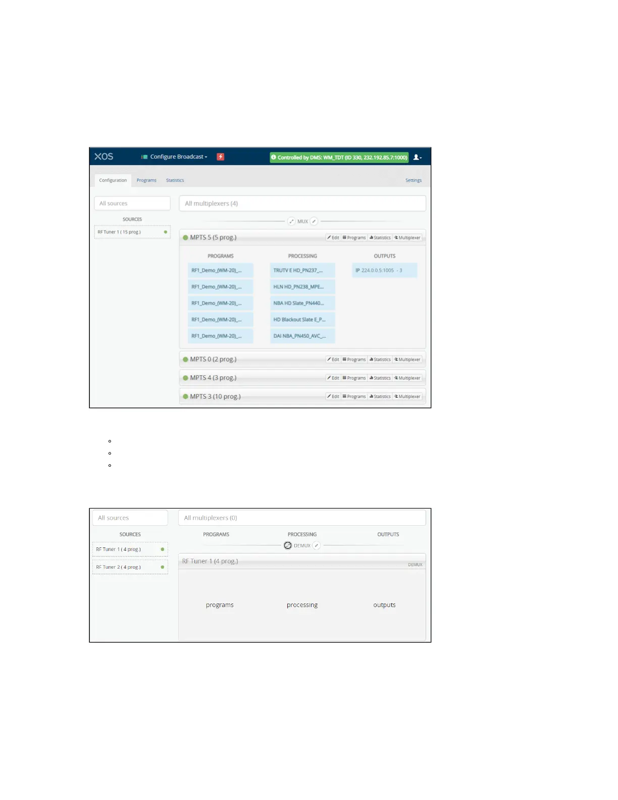 Click on a multiplexer to expand the display for a list of authorized programs.
