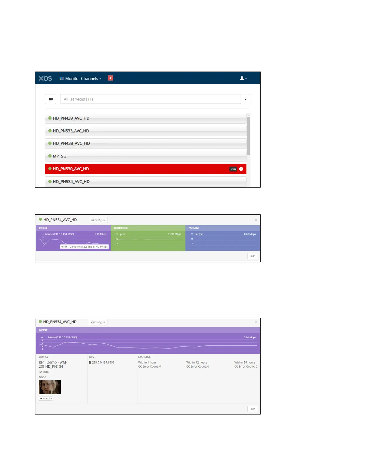 On theINGESTpanel, verify the service bitrate and IP socket.