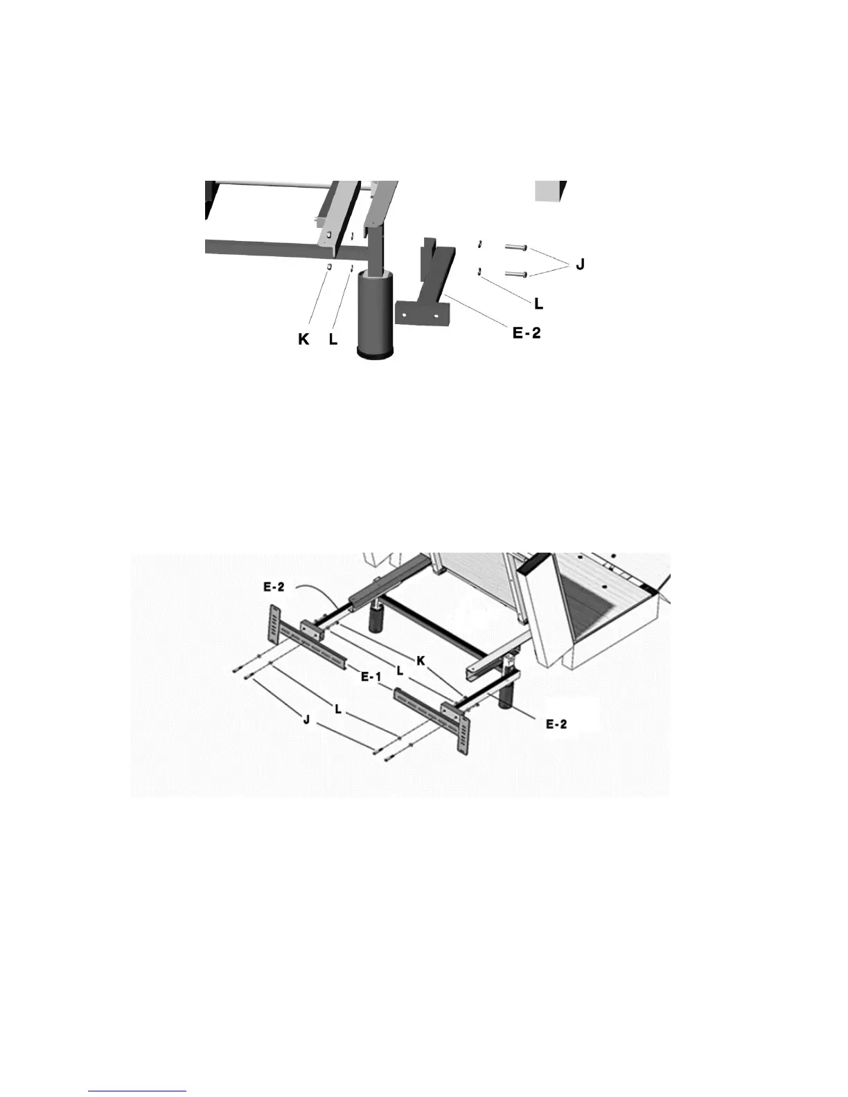 the holes on E-1 and E-2 Brackets. Fasten these Bolts (J), Washers (L) and Nuts (K) by using the
