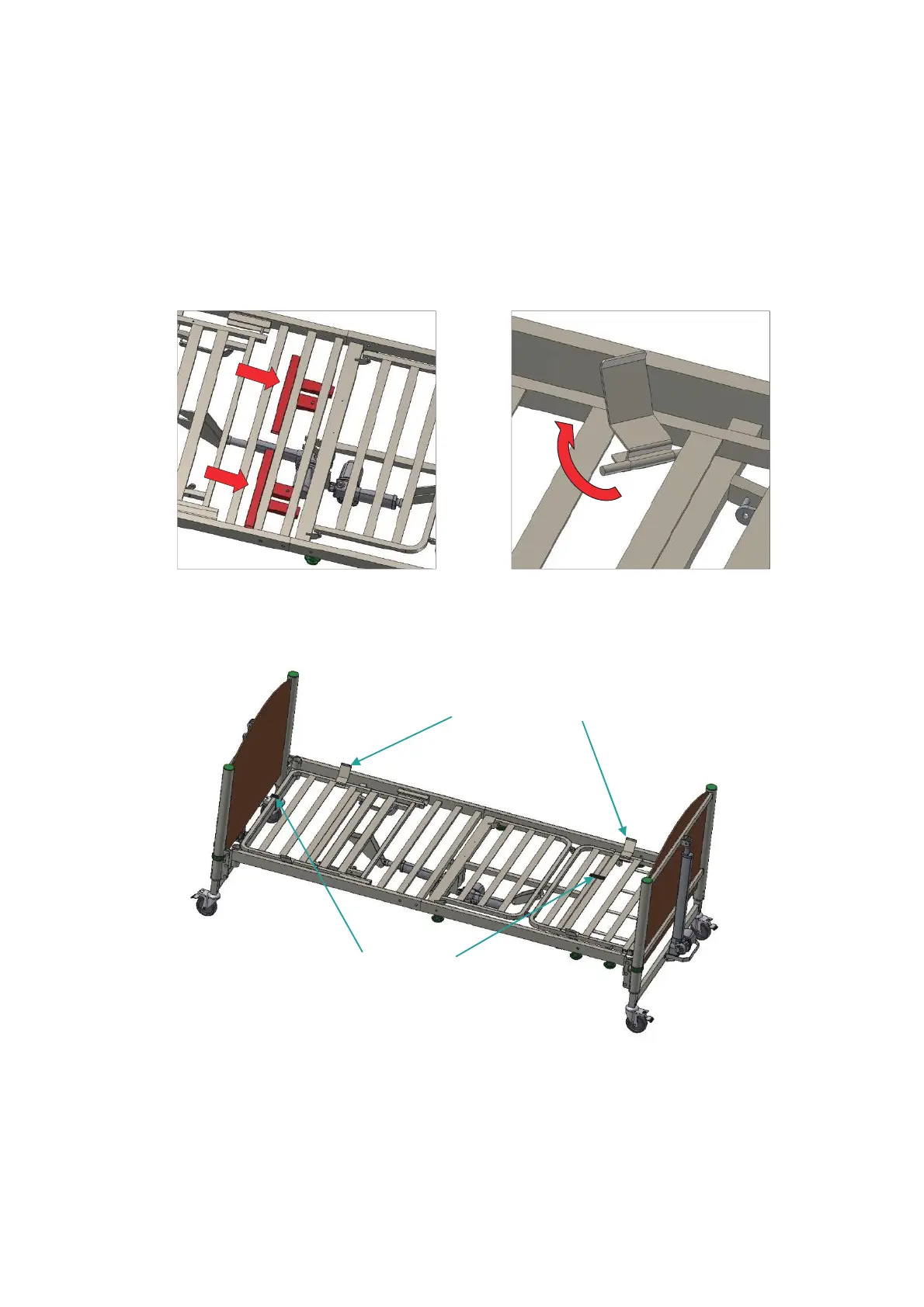 attached to the fixing points on the underside of the bed as indicated (Figure 7). Ensure