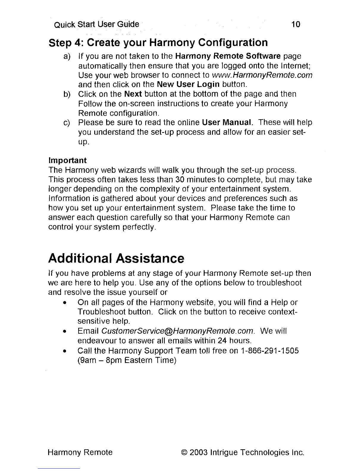 Harmony SST-659 - Step 4: Create your Harmony Configuration; Additional Assistance; Website Help Resources; Email Support