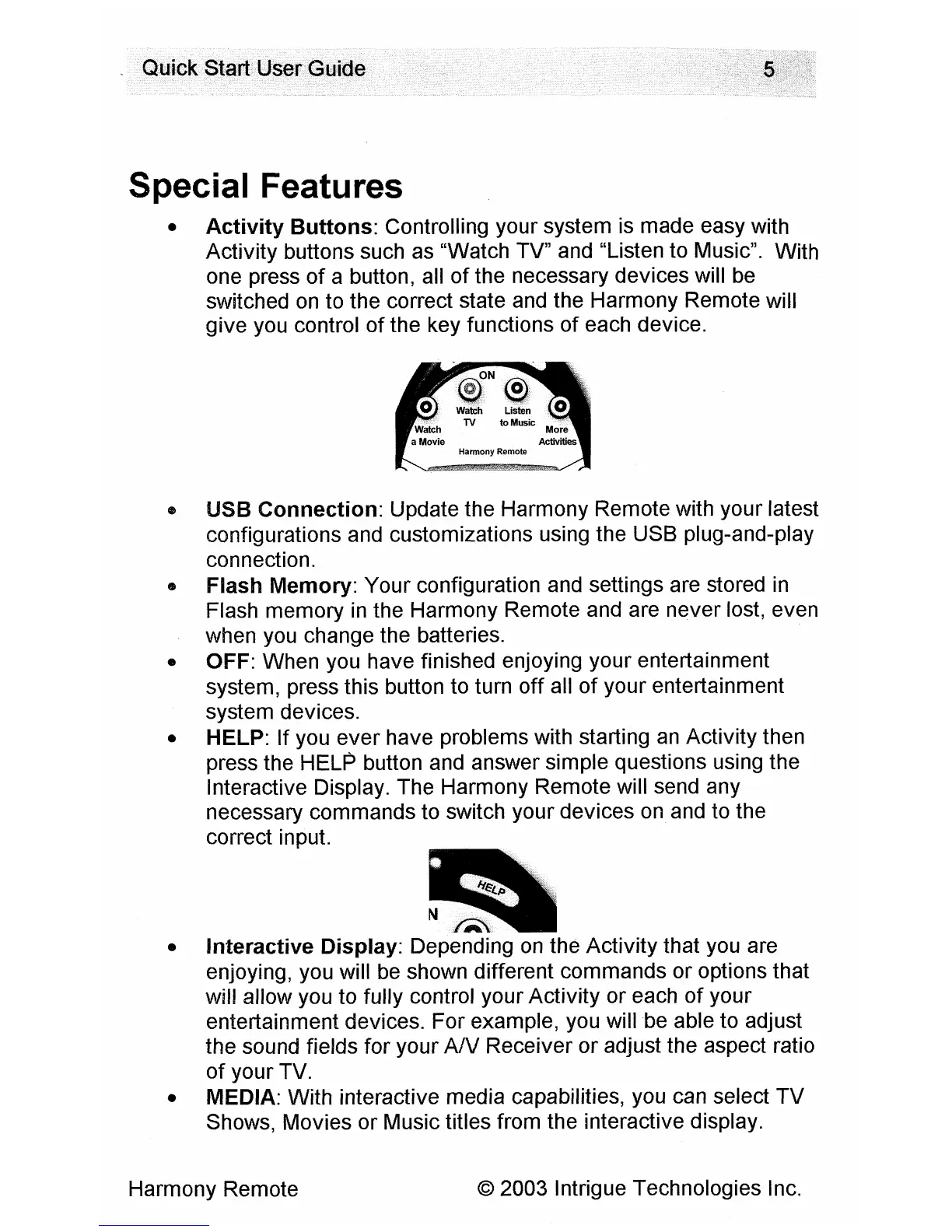 Harmony SST-659 - Special Features; Activity Buttons; USB Connection; Interactive Display