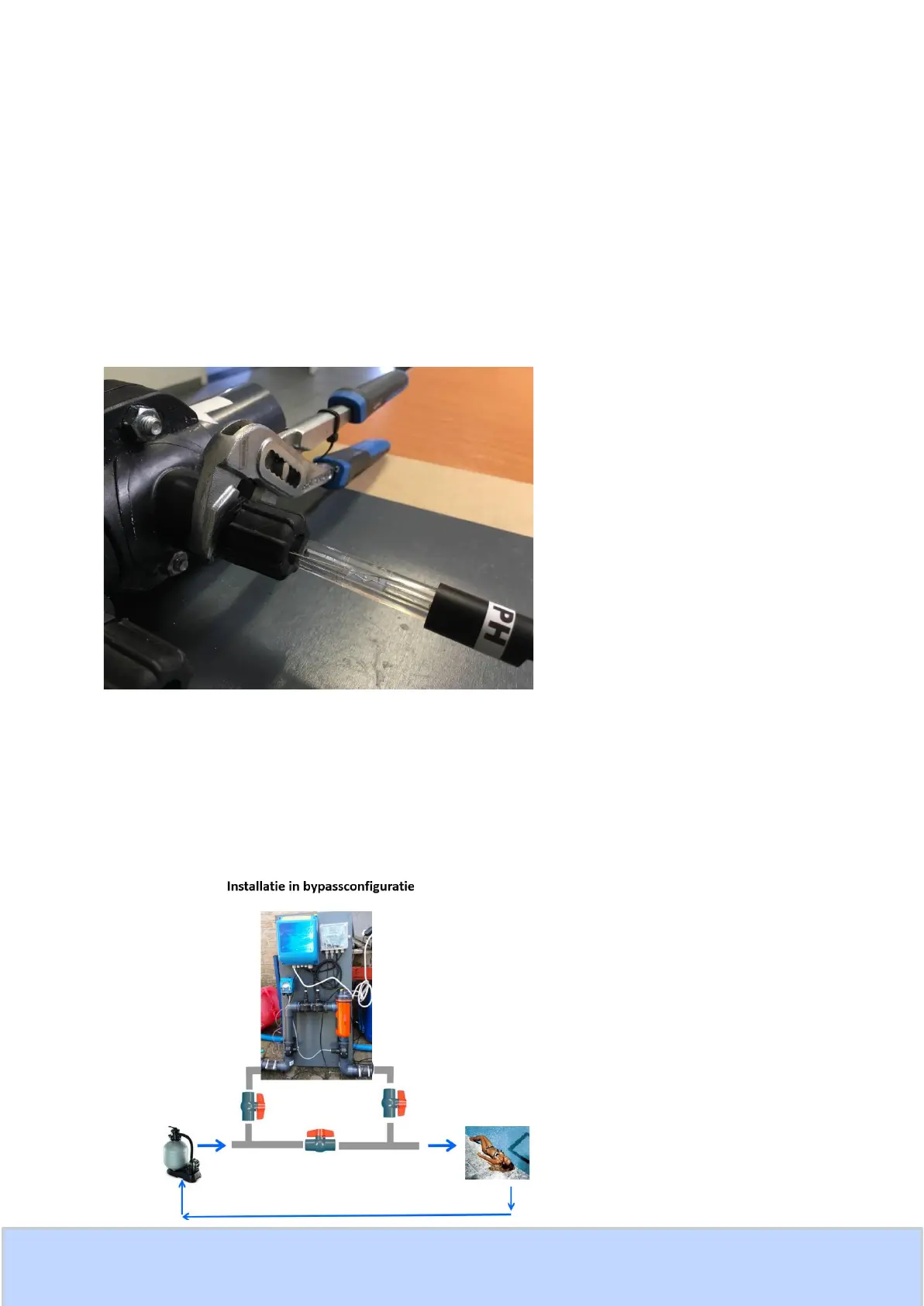 4 Connect water inlaat and water outlet, so that the water passes the Redox and pH