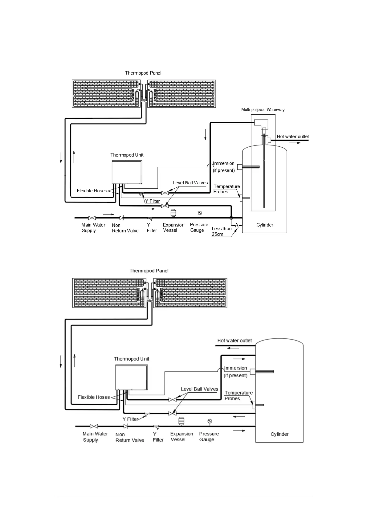 HARNITEK Thermopod - Unvented System Hydraulic Diagrams; Unvented System Water Flow Diagram; Unvented System from Cylinder Side