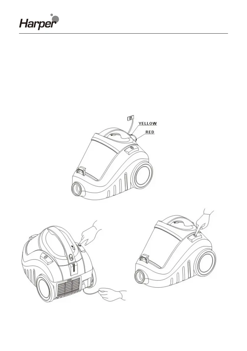 length. Do not extend the cable beyond the RED mark. To rewind the power