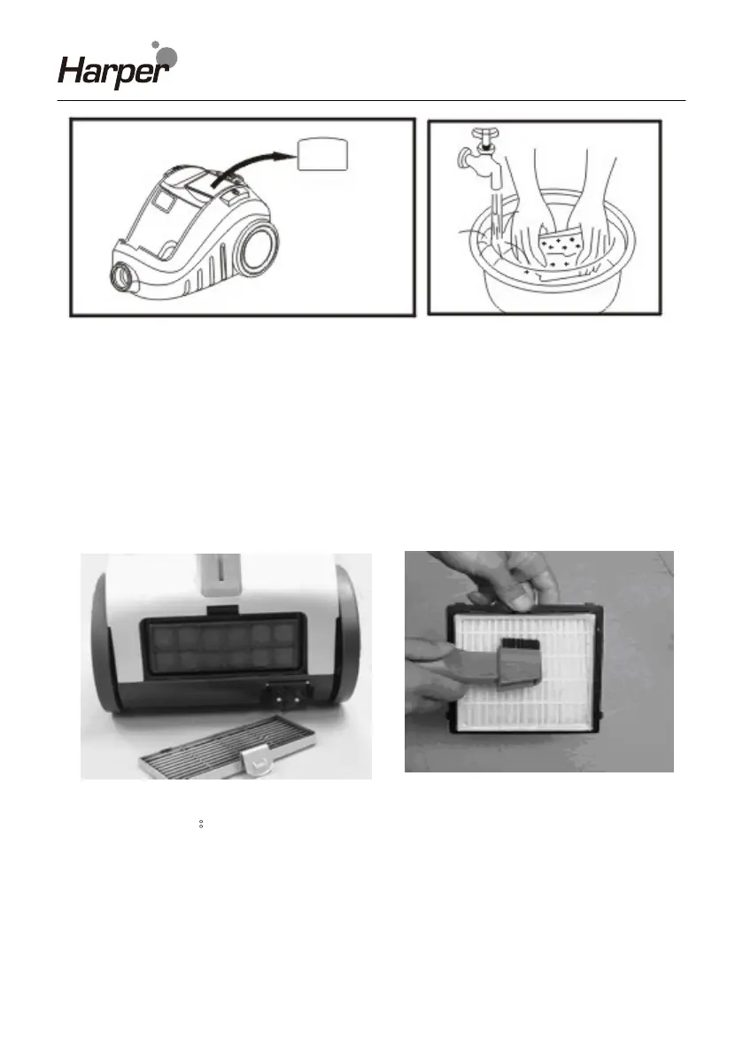 To clean the HEPA filter, firstly remove the grid outside the appliance,