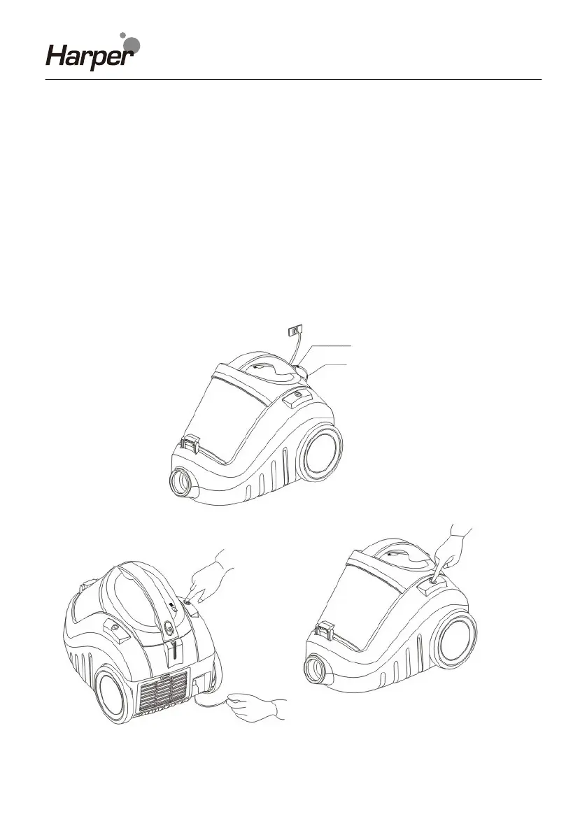 Pour rembobiner le câble d'alimentation, appuyez sur le bouton(1)