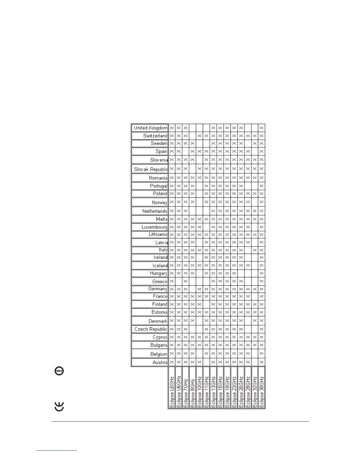 The Eclipse radio is classified under the R&TTE Directive 99/5/EC as a class 2.8 radio (microwave fixed link) product. Point-to-point radio relay