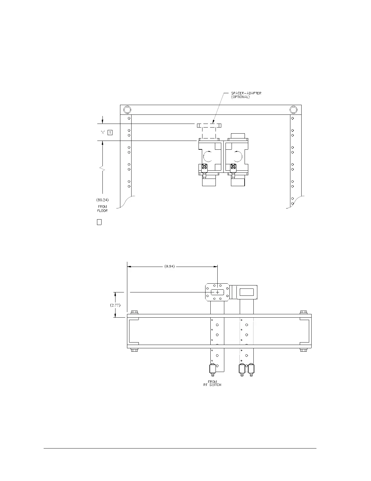 Harris Constellation - Figure 6-2: ACU, Nonprotected (Front View), Mechanical Drawing; Figure 6-3: ACU, Hot-Standby (Top View), Mechanical Drawing
