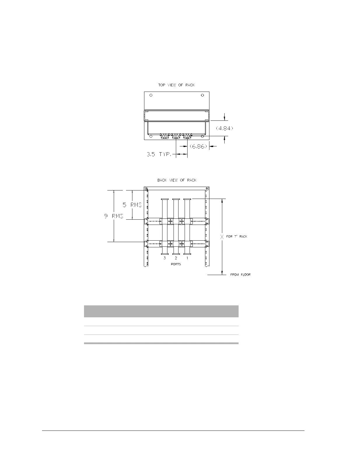 Table 6-4: X dimension from floor, ACU, repeater/dual