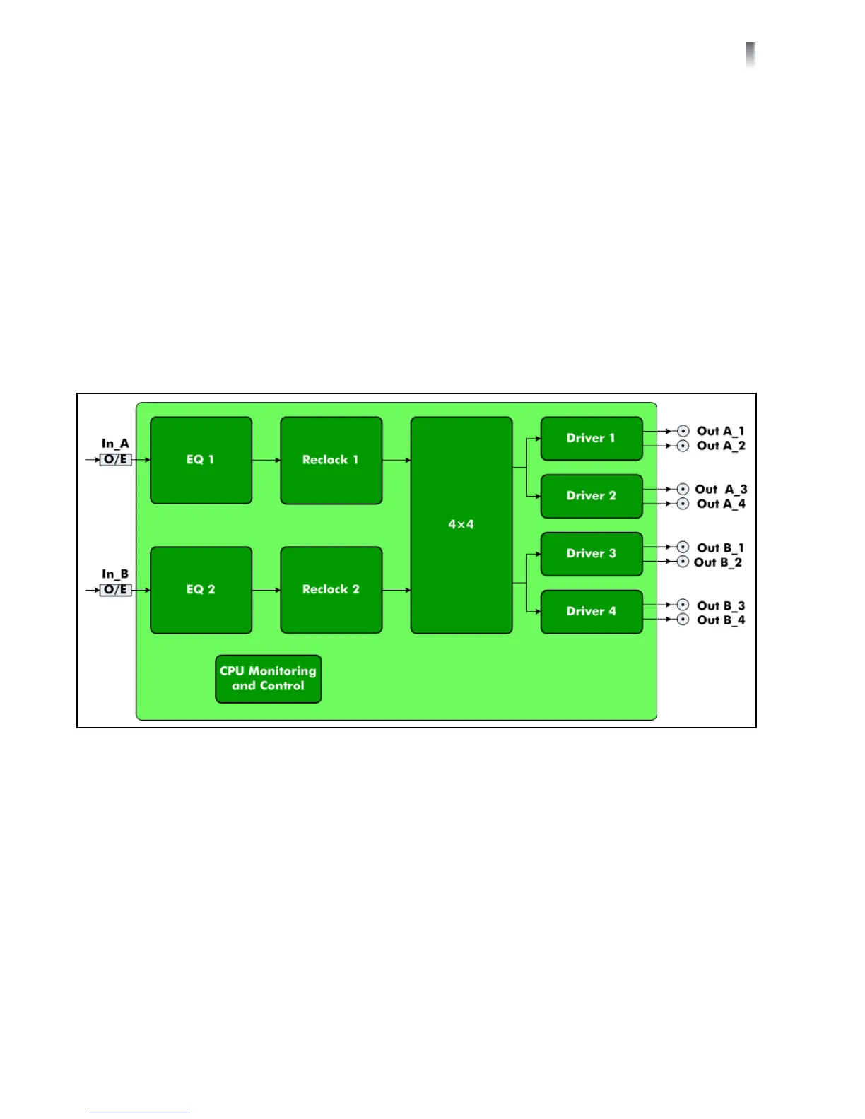 basic signal flow diagram for this distribution amplifier module.