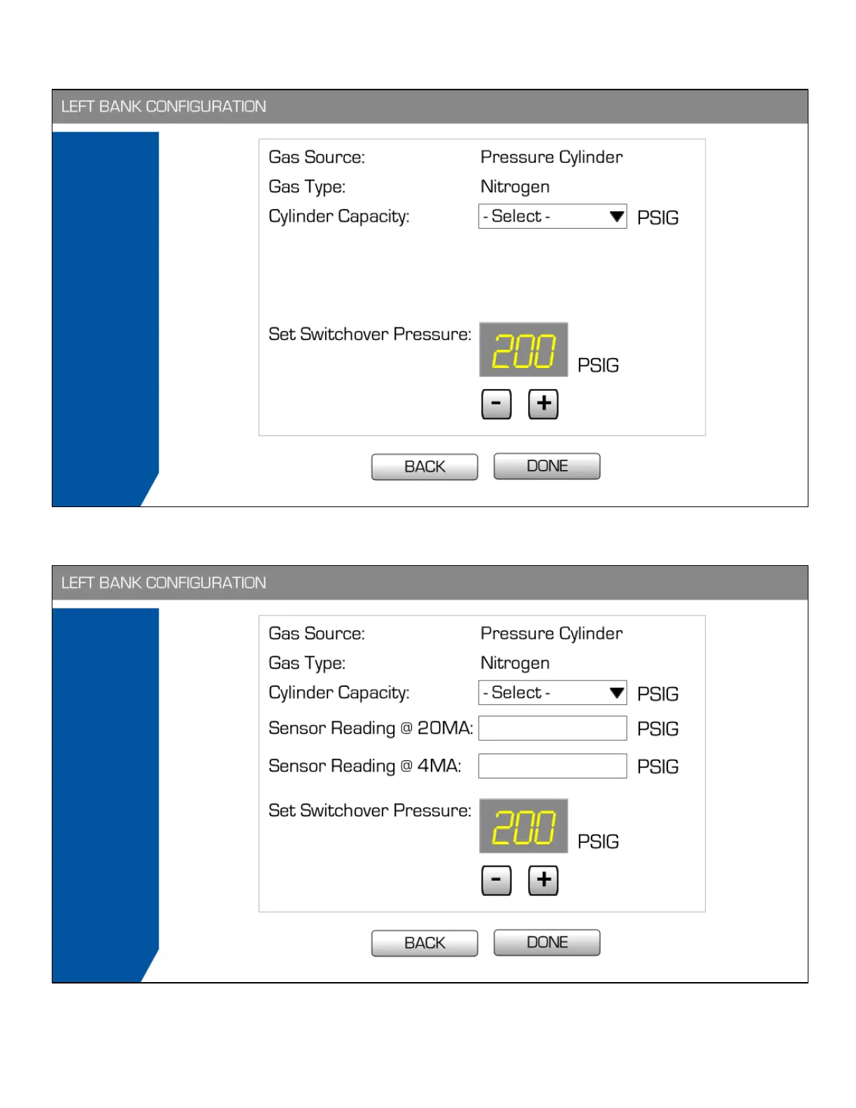 If the user selects Pressure Cylinder or Cylinder Bank with Telemetry option 3 (Standalone telemetry with end-user